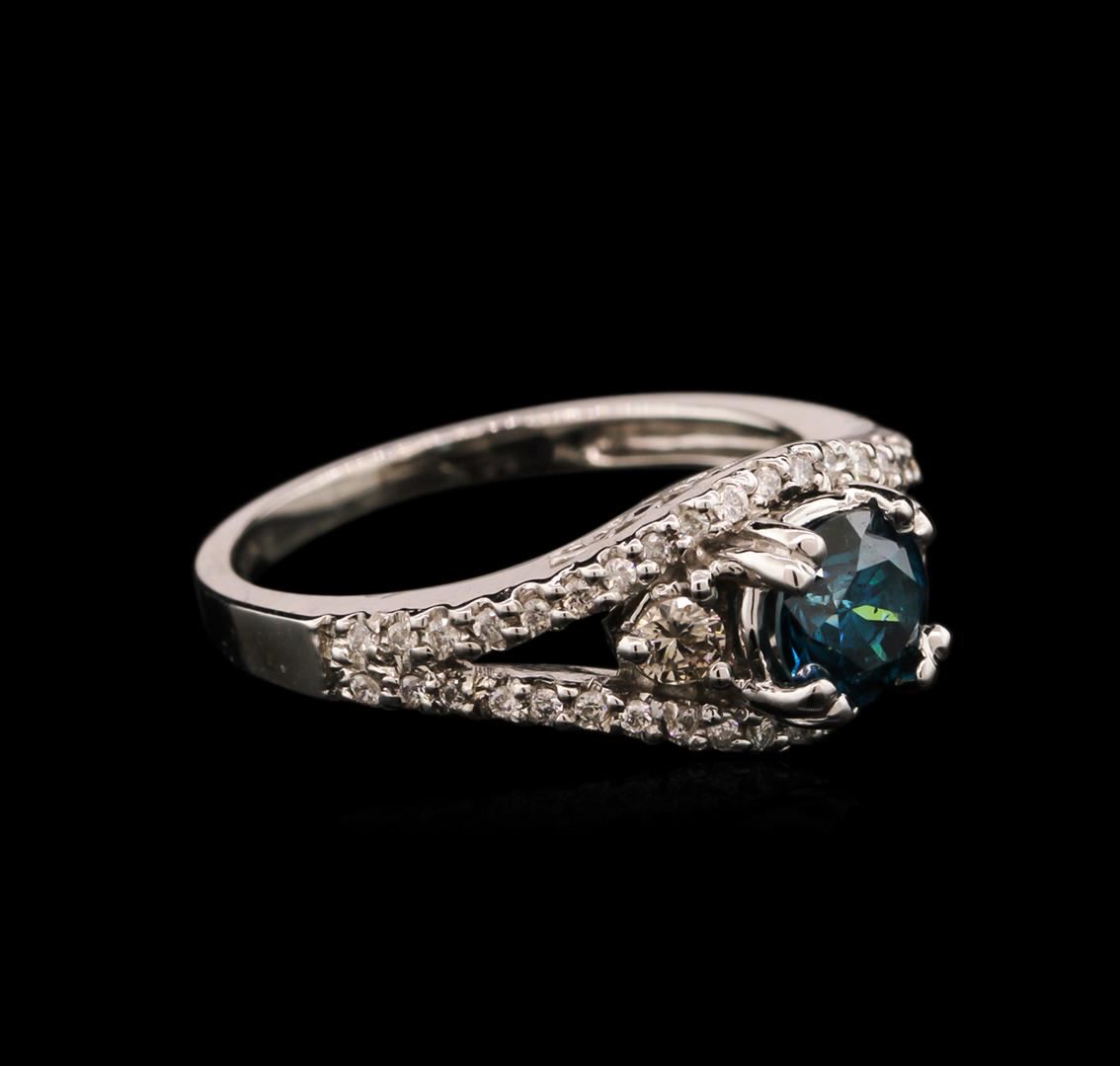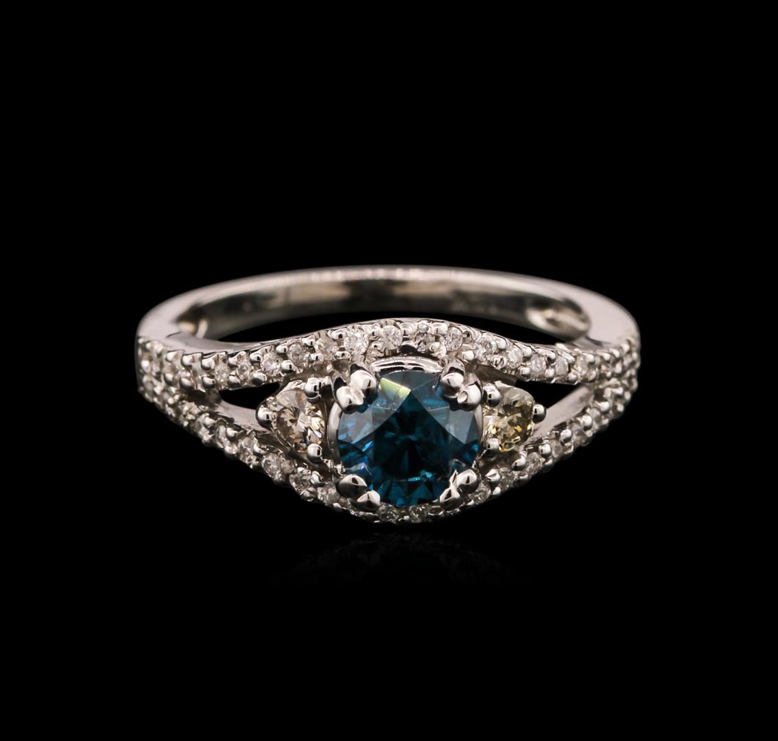 One ring featuring: 14KT white gold weighing 4.10 grams containing one blue diamond center stone with a total weight of 0.76ct and 46 white side diamonds with a total weight of 0.33ct.
