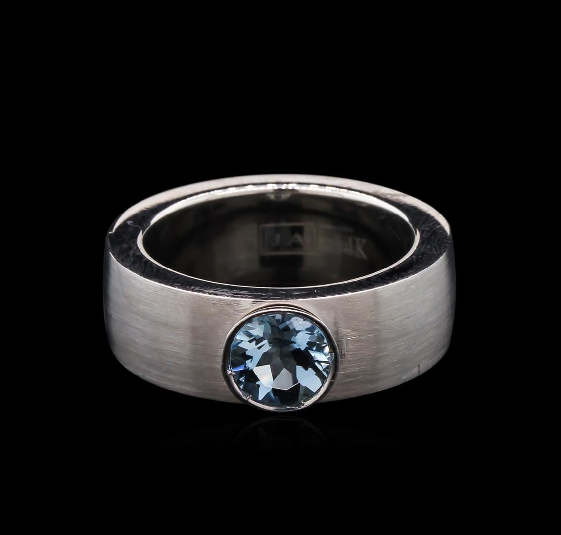 One solitaire ring featuring: 14KT white gold weighing 20.13 grams containing one aquamarine with a total weight of 1.10ct.