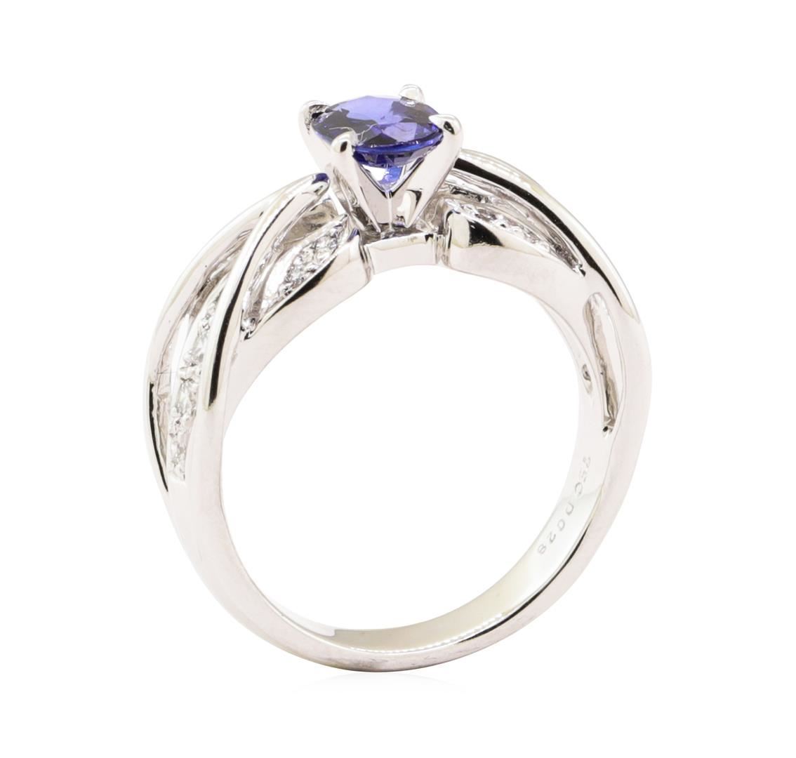 One electronically tested 18KT white gold lady's combination cast & assembled fashion ring with a crossover shank with a bright polish finish. The featured lady's ring has a shank measuring 3.20 millimeters wide. Identified with markings of '750'. Conditi