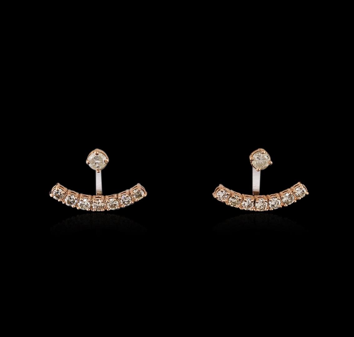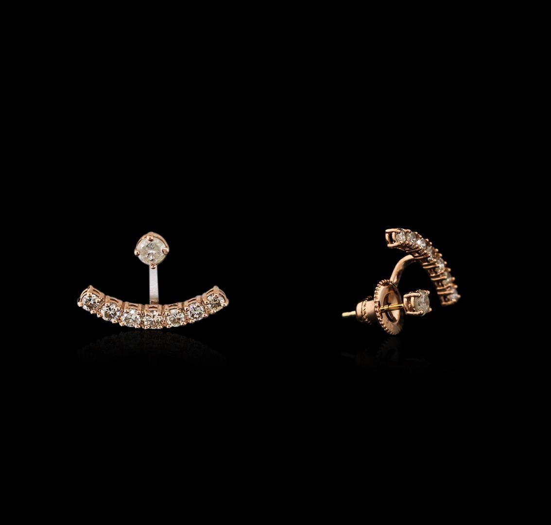 One pair of earrings featuring: 14KT rose gold weighing 3.96 grams containing 16 diamonds with a total weight of 1.10ct.