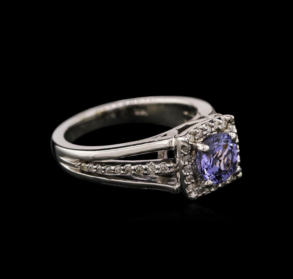 One ring featuring: 14KT white gold weighing 6.18 grams containing one tanzanite center stone with a total weight of 1.10ct and 38 diamonds with a total weight of 0.25ct.
