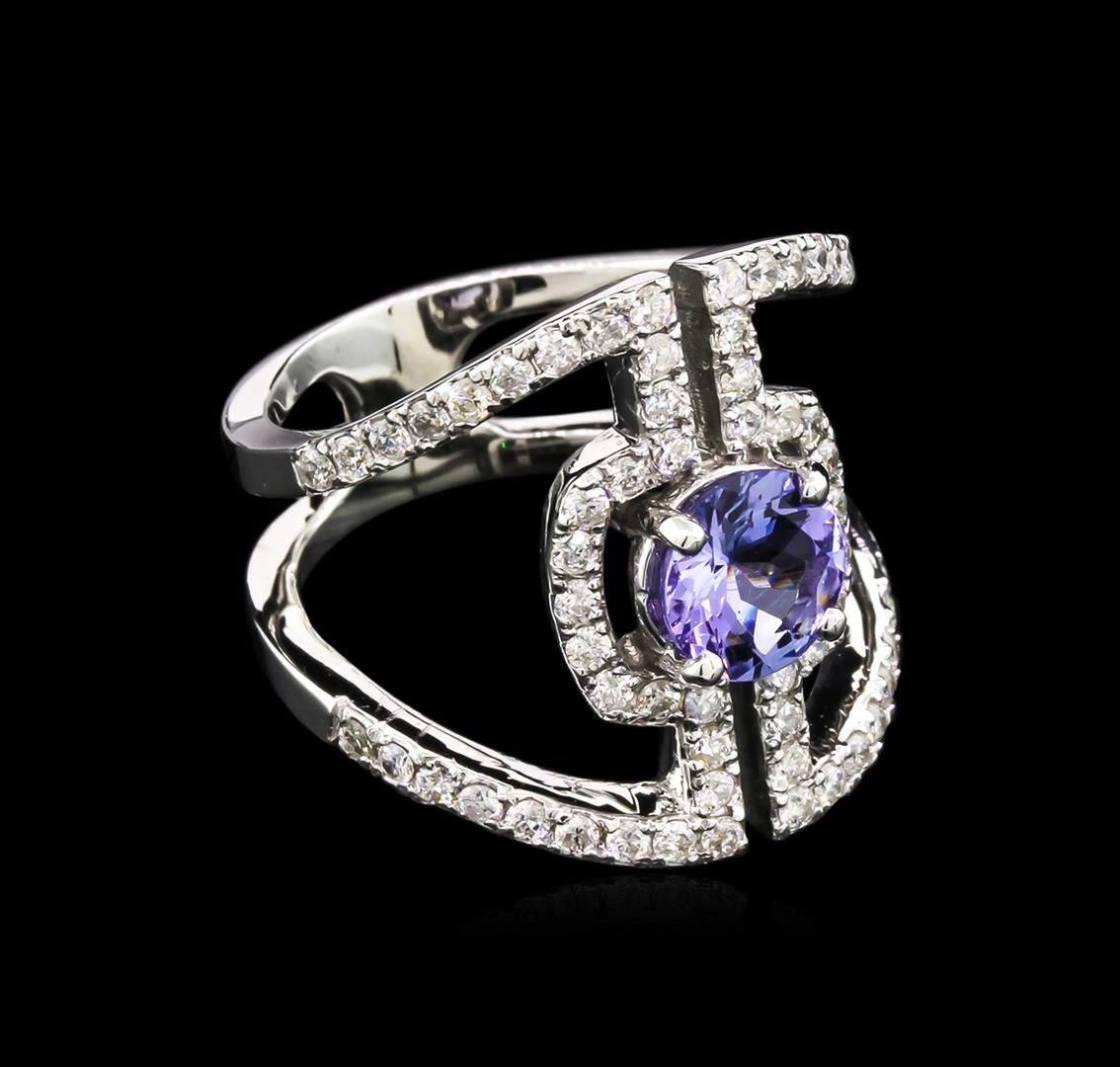 One ring featuring: 14KT white gold weighing 6.72 grams containing one tanzanite with a total weight of 1.10ct and 62 diamonds with a total weight of 0.75ct.