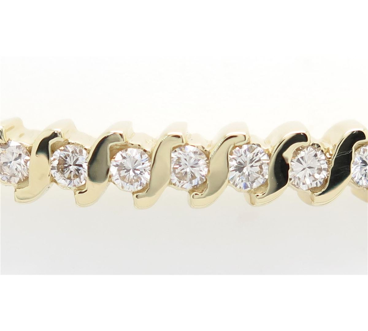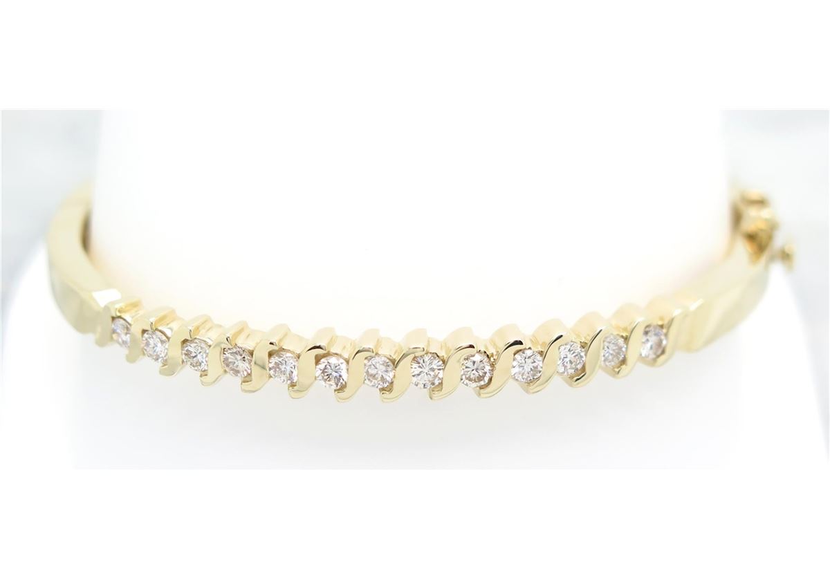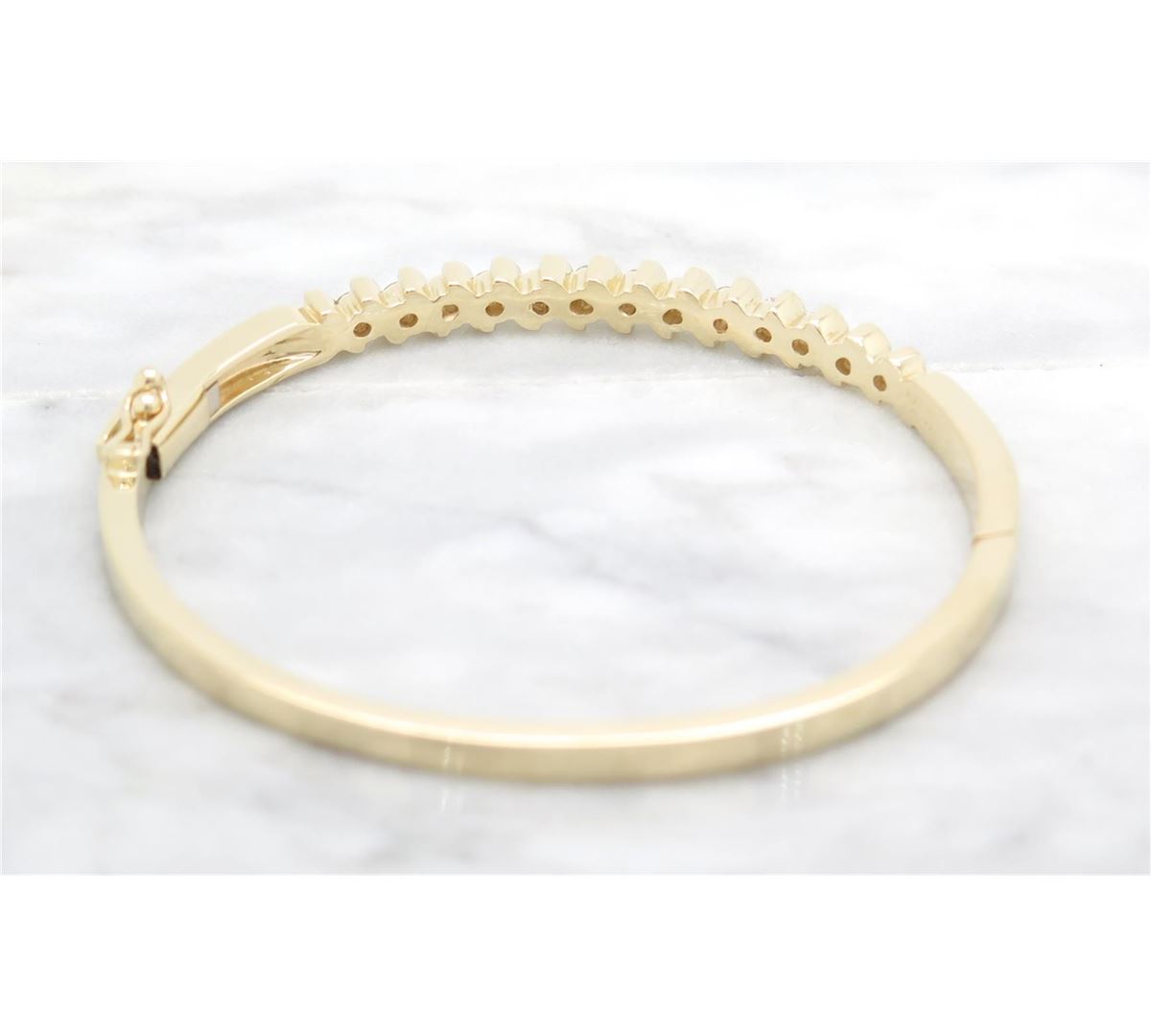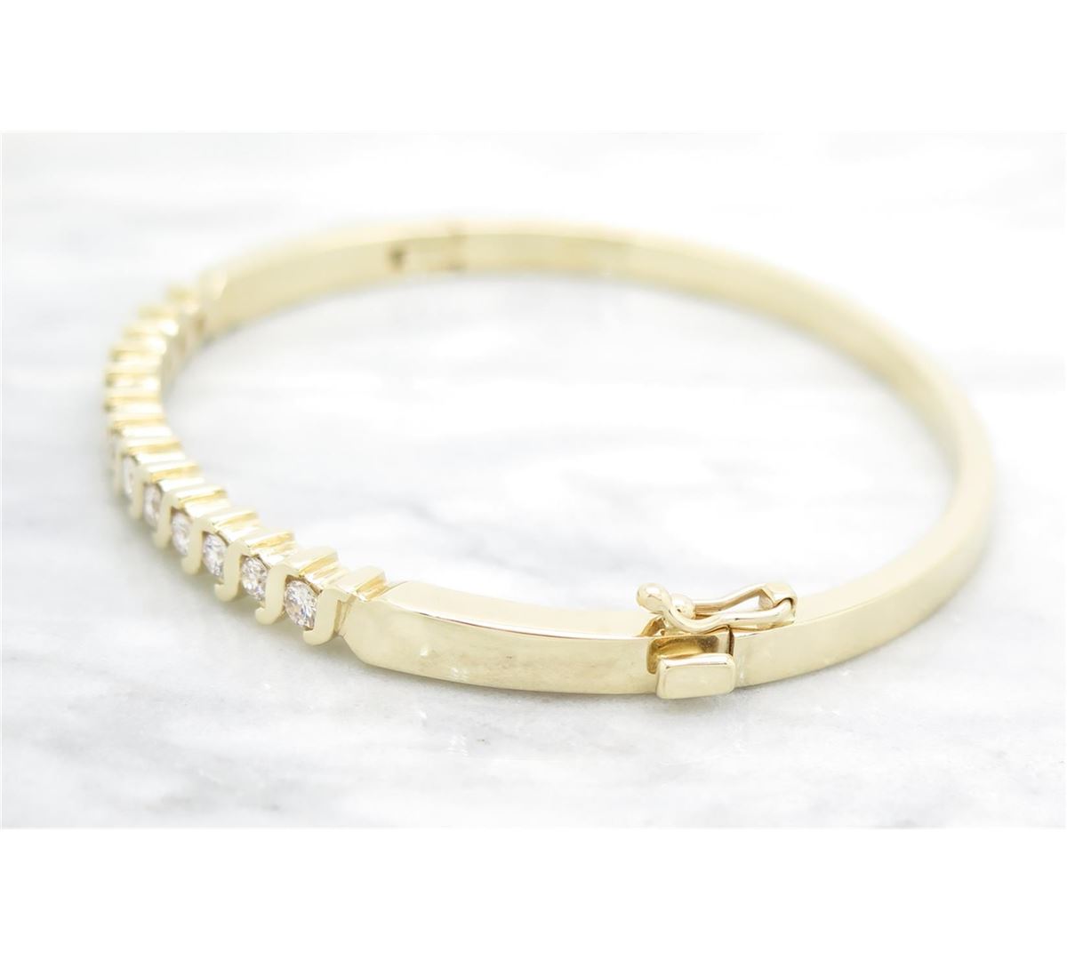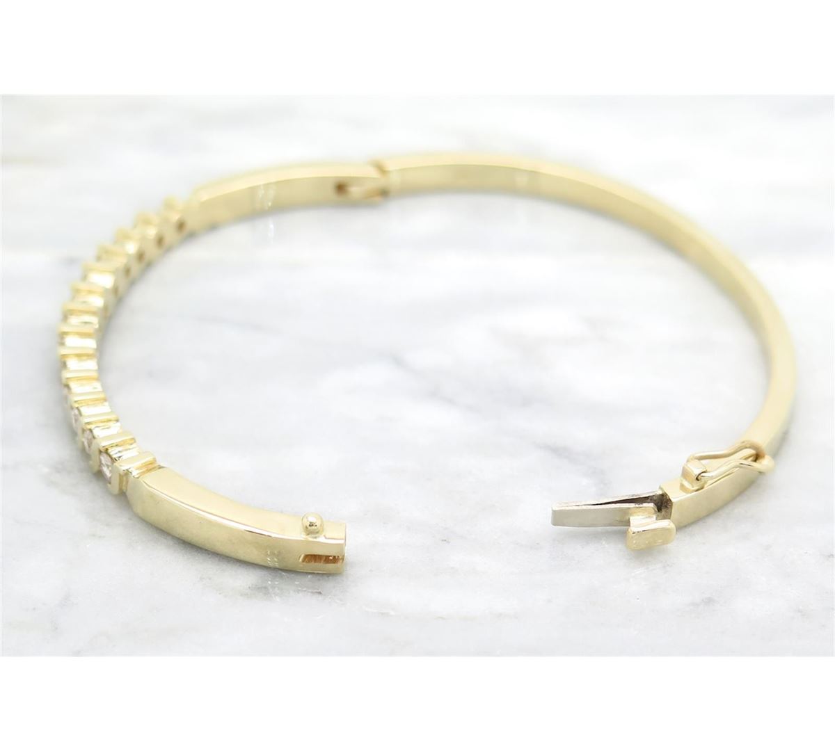One tested 14K yellow gold diamond bracelet. Condition is new. Containing: Thirteen Round Brilliant cut diamonds. Clarity: VS-SI, Color: H-I. Approximate total diamond weight: .36CTW. Diamonds are graded in the mounting, unless otherwise stated. Weight of ring: 26 grams. Size: 7 inches
