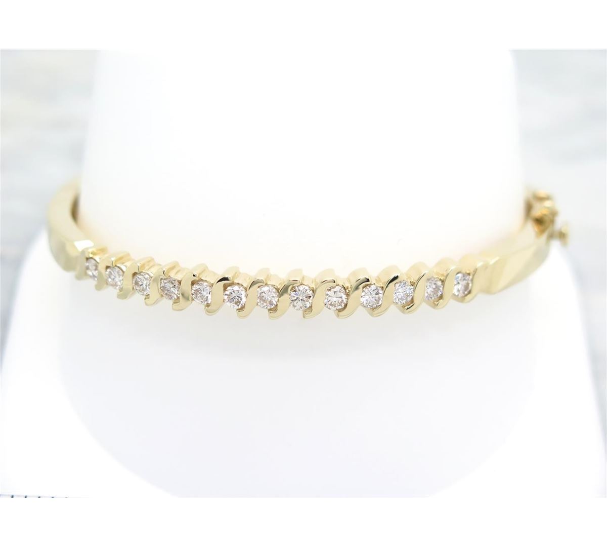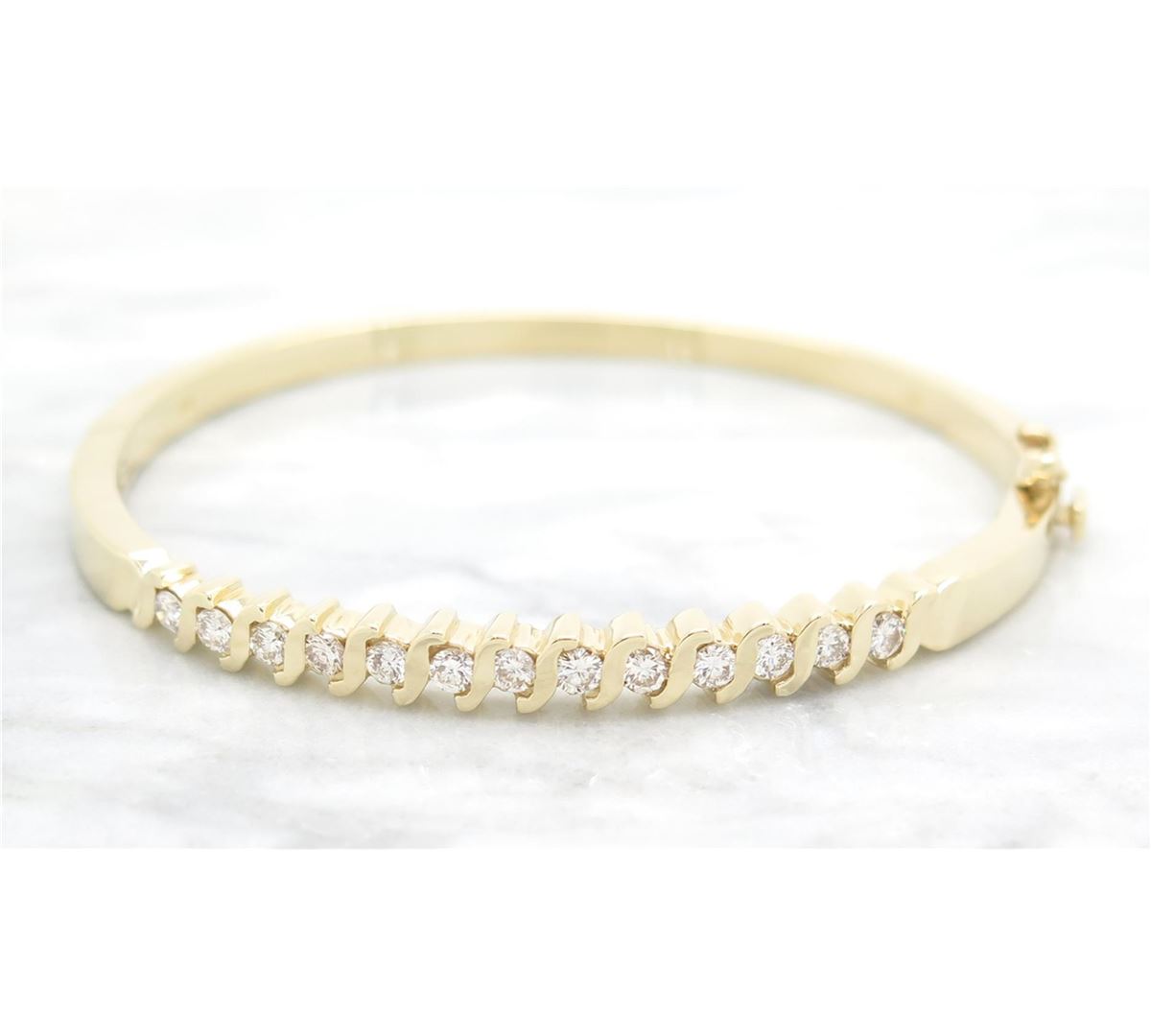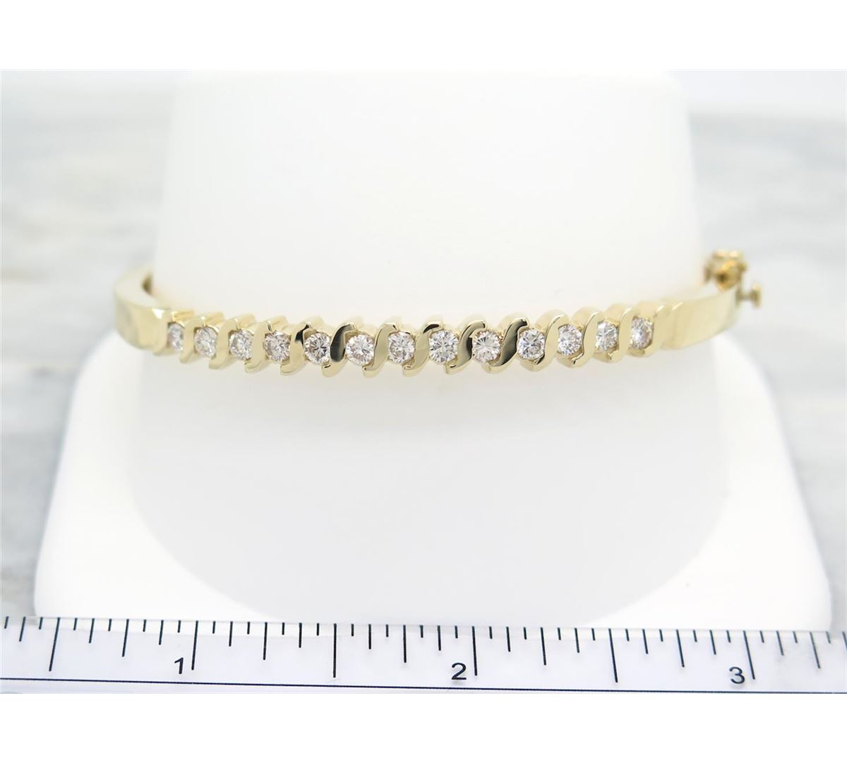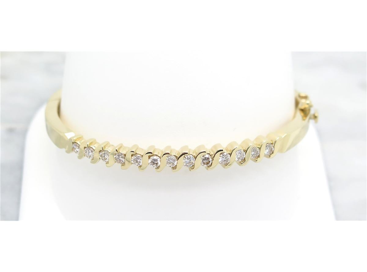 One tested 14K yellow gold diamond bracelet. Condition is new. Containing: Thirteen Round Brilliant cut diamonds. Clarity: VS-SI, Color: H-I. Approximate total diamond weight: .36CTW. Diamonds are graded in the mounting, unless otherwise stated. Weight of ring: 26 grams. Size: 7 inches