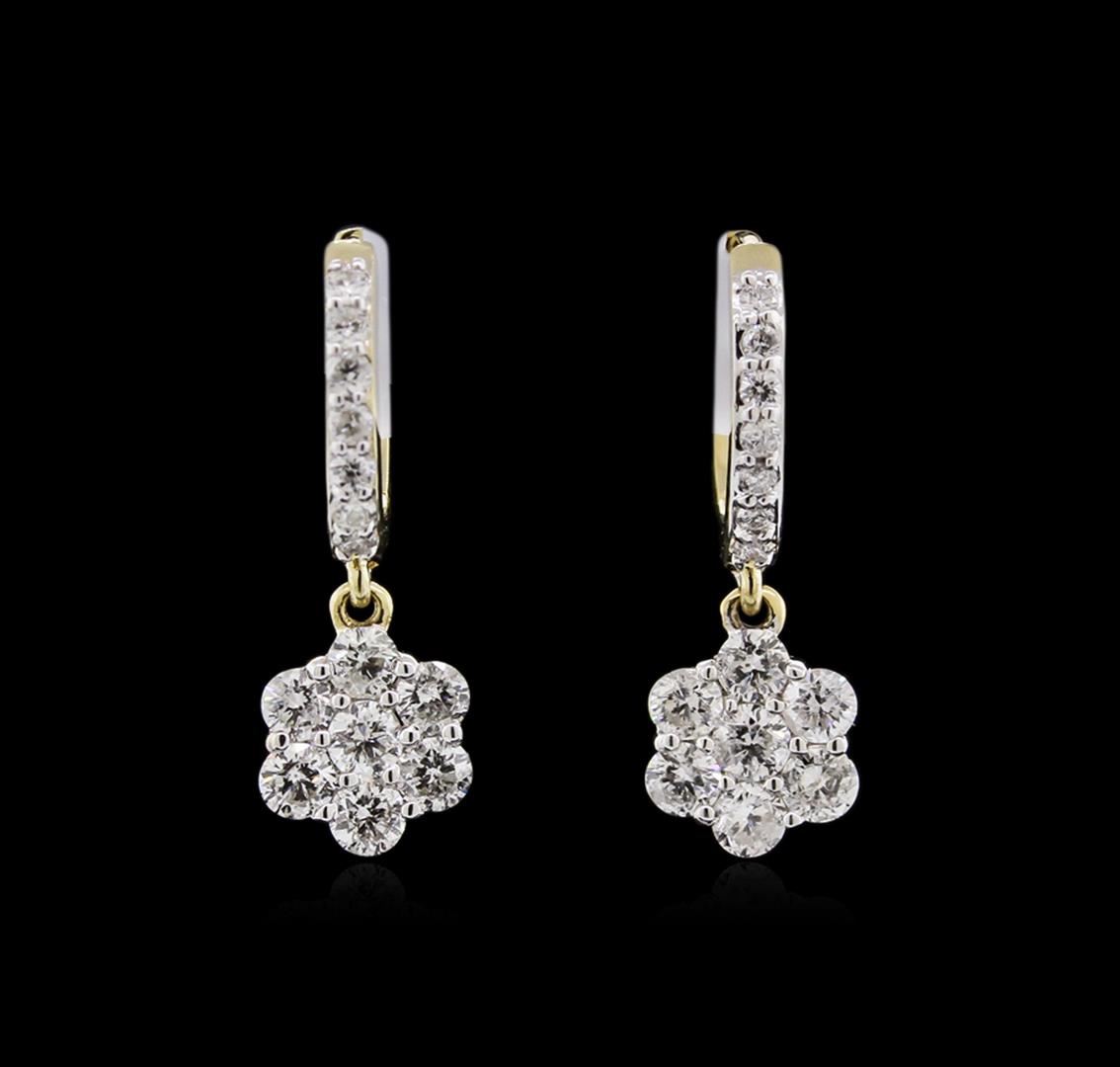 One pair of dangle earrings featuring: 14KT yellow gold weighing 2.90 grams containing diamonds with a total weight of 1.10ct.
