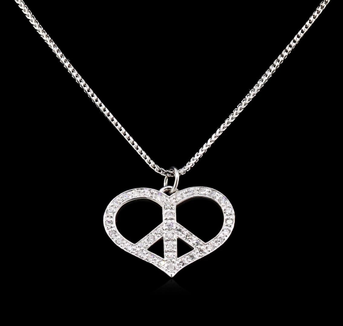 One heart shape pendant with chain featuring: 14KT white gold weighing 6.43 grams containing diamonds with a total weight of 1.10ct.