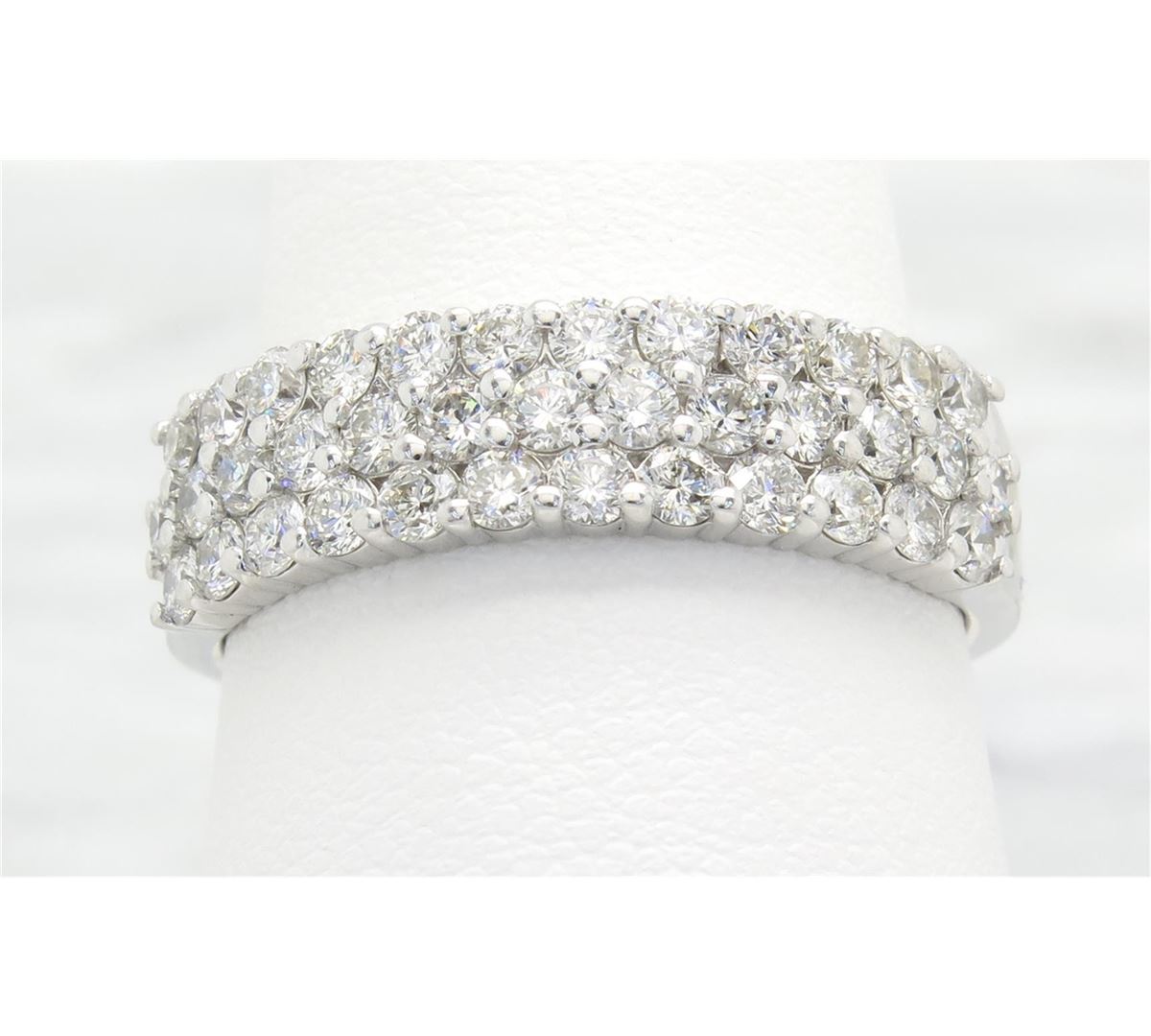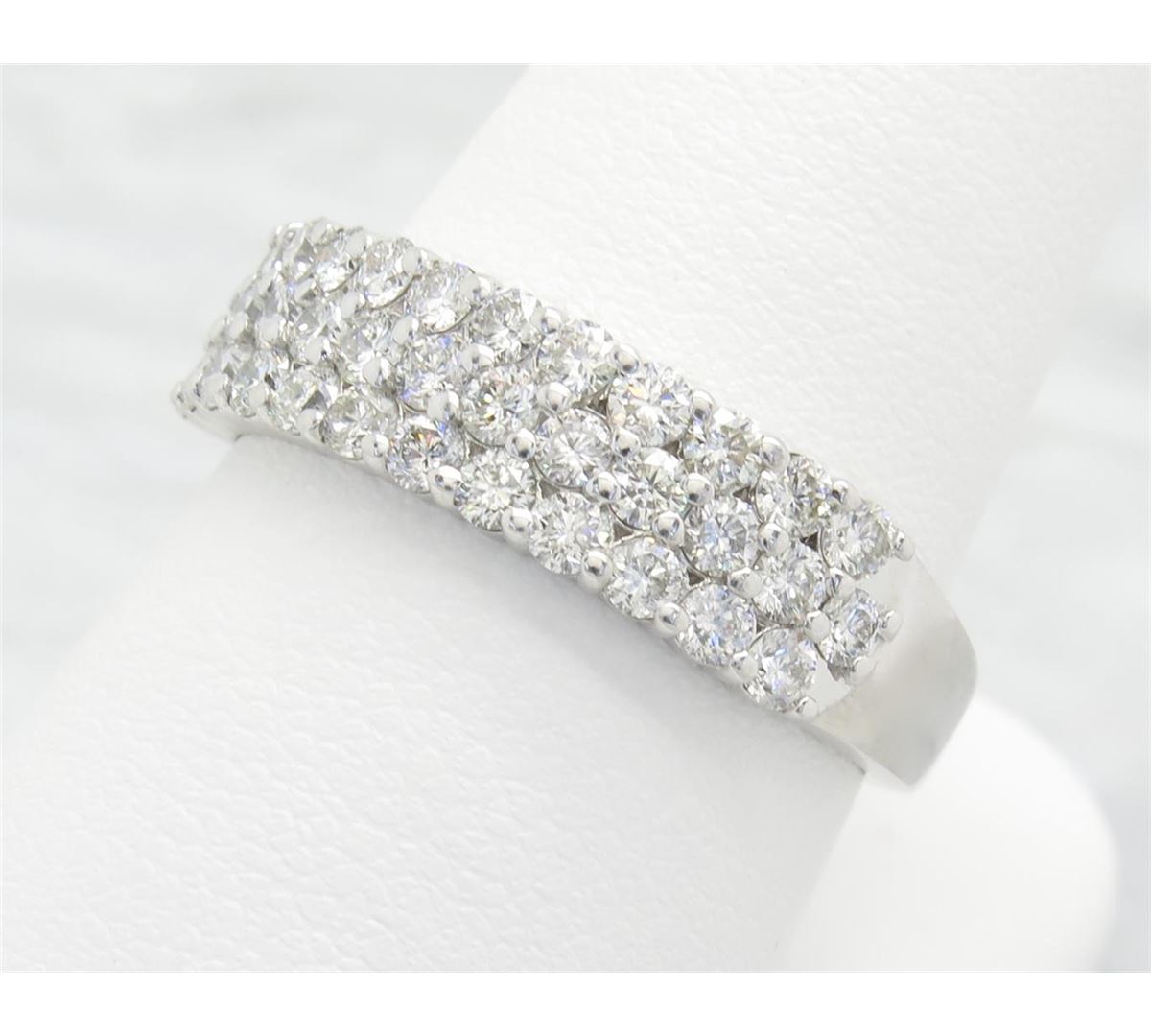 One tested 14K white gold diamond ring. Condition is new. Containing: 37 Round Brilliant Cut Diamonds. Clarity: I-SI, Color: G-H. Approximate total diamond weight: 1.10CTW. Diamonds are graded in the mounting, unless otherwise stated. Weight: 5.2 grams. Size: 8.25