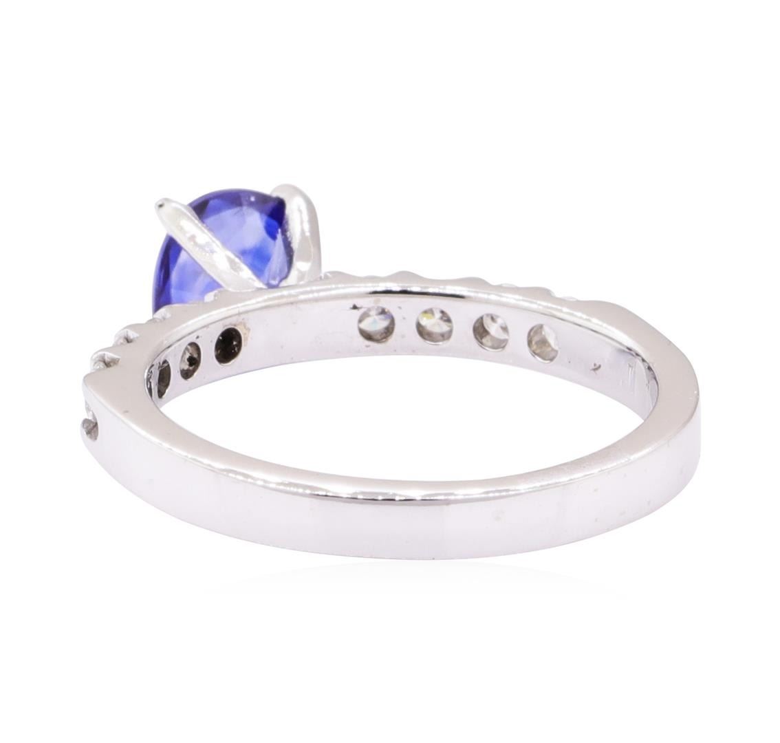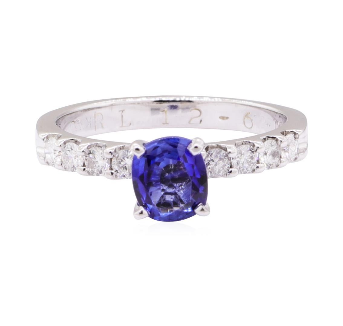 One 1.11ctw Blue Sapphire and Diamond Ring - 14KT White Gold.