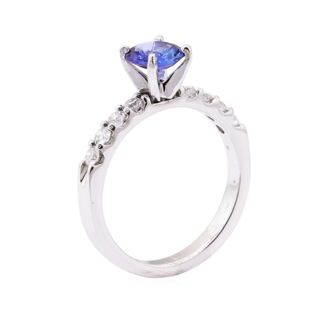 One 1.11ctw Blue Sapphire and Diamond Ring - 14KT White Gold.
