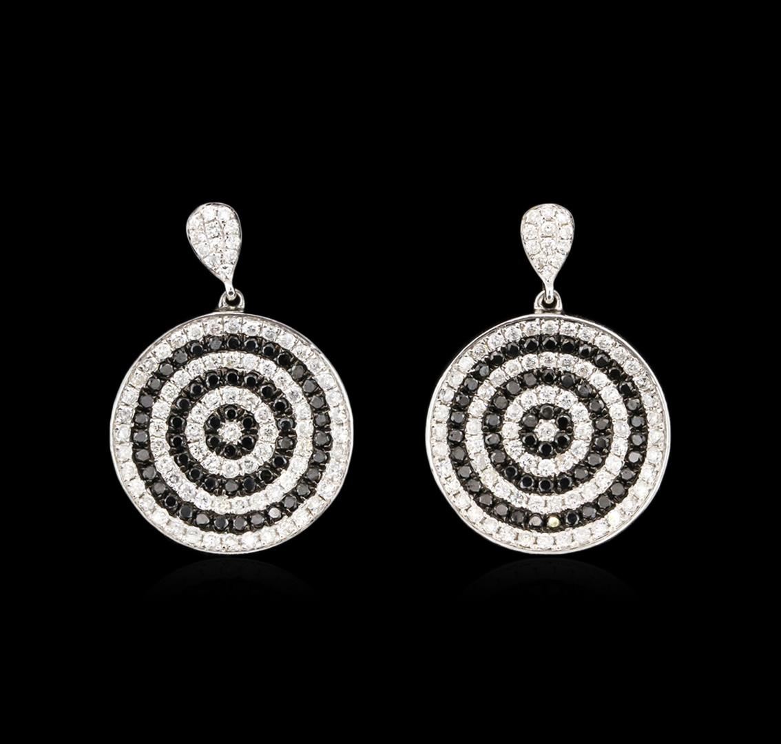 One pair electronically tested 14KT white gold ladies cast diamond earrings with friction posts with a bright polish finish. Identified with markings of "14K". Condition is new. Containing: One Hundred Forty-Eight prong set round brilliant cut diamonds, measuring 1.10 - 1.10 x 0.66mm (depth est.) approximate. Total Weight of 148 Stones = 0.71ct. Clarity: I-1 to I-2. Color: I - J, Cut is Good. One Hundred Ten prong set round brilliant cut diamonds, measuring 1.00 - 1.00 x 0.60mm (depth est.) approximate. Total Weight of 110 Stones = 0.40ct. Cut is Good. Diamonds are graded in the mounting, unless otherwise stated. Total Weight of Diamonds 1.11ct. Total Weight of Earrings 7.86 grams. GGL Appraised at $2,690.00.