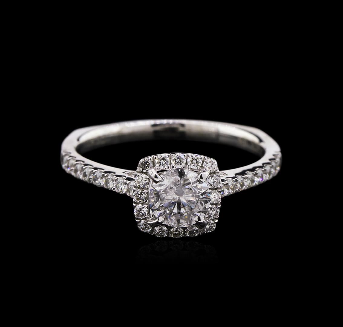 One electronically tested 18KT white gold ladies cast diamond unity ring with a bright polish finish. The featured diamond is set within a diamond bezel supported by a diamond accented under gallery supported by diamond set shoulders, completed by a two millimeter wide band. Trademark is Orianne. Identified with markings of "18K". Condition is new, good workmanship. Containing: One prong set round brilliant cut diamond, measuring 5.29 - 5.25 x 3.40mm (depth est.) approximate weight of 0.66ct. Graded in the setting. Clarity: I-1. Color: 64.5%. Table 56.9%. Fifty-Two prong set round brilliant cut diamonds (depth est.) approximate total weight of 52 Stones = 0.45ct. Graded in the setting. Clarity: SI-1 to SI-2. Color: G - I. Total Weight of Diamonds 1.11ct. Total Weight of Ring 3.80gm. AIG Appraised at $5,980.00.