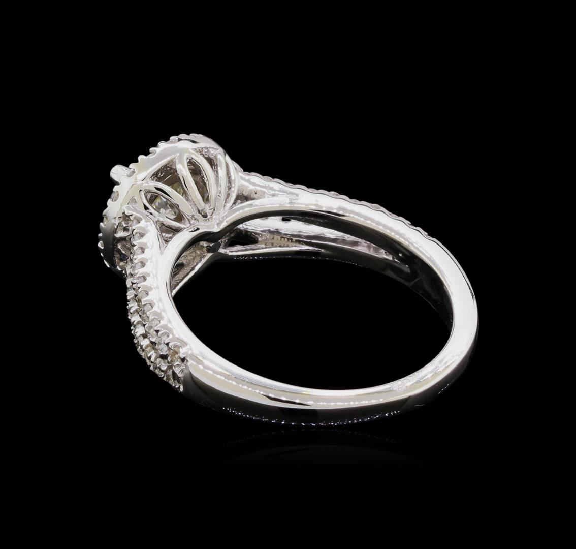 One electronically tested 14KT white gold lady's cast wedding ring with a split shank basket halo with a bright polish finish. The featured lady's ring has a shank measuring 1.85 millimeters wide. Identified with markings of "14K". Condition is new, good workmanship. Containing: One prong set round brilliant cut diamond, measuring 5.81 - 5.71 x 3.57mm (depth est.) approximate weight of 0.73ct. Graded in the setting. Clarity: I-1. Color: H - I. Cut Very Good Fifty-Eight prong set round brilliant cut diamonds, measuring 1.30 - 1.20 x 0.75mm (depth est.) approximate total weight of 58 Stones = 0.40ct. Graded in the setting. Clarity: SI-2 to I-1. Color: H - I. Cut Good. Total Weight of Diamonds 1.13ct. Total Weight of Ring 4.90gm. GAS Appraised at $6,135.00.
