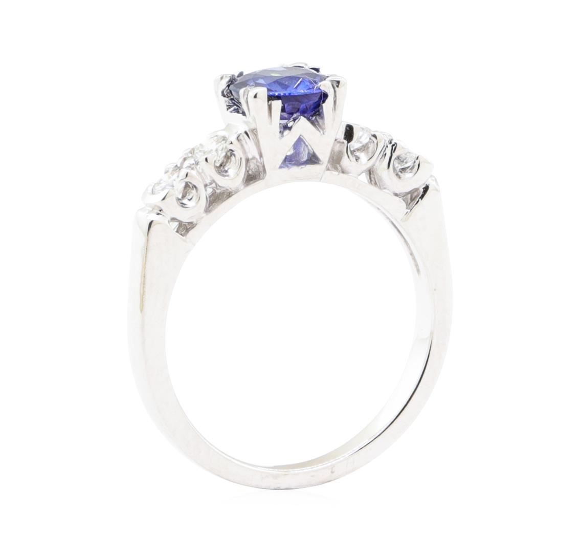 One electronically tested 18KT white gold lady's cast vintage style fashion ring with a straight line cathedral shank with a bright polish finish. The featured lady's ring has a shank measuring 1.90 millimeters wide. Identified with markings of '18K'. Con