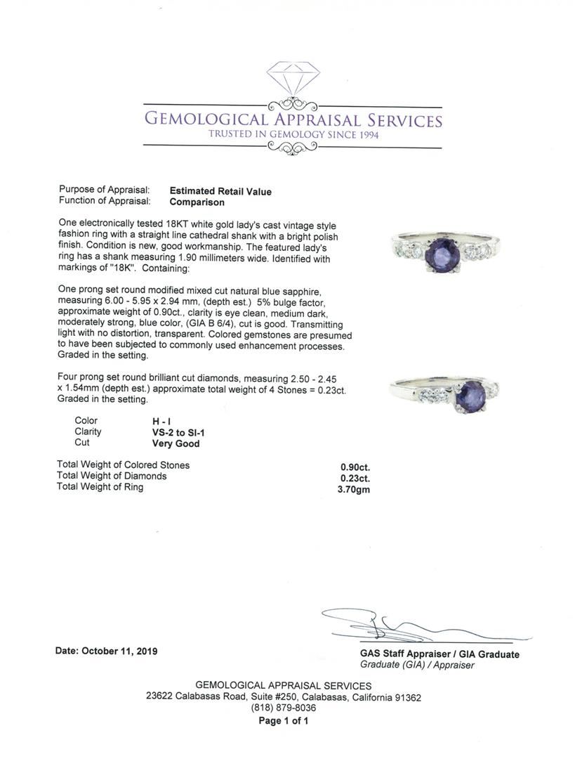 One electronically tested 18KT white gold lady's cast vintage style fashion ring with a straight line cathedral shank with a bright polish finish. The featured lady's ring has a shank measuring 1.90 millimeters wide. Identified with markings of '18K'. Con