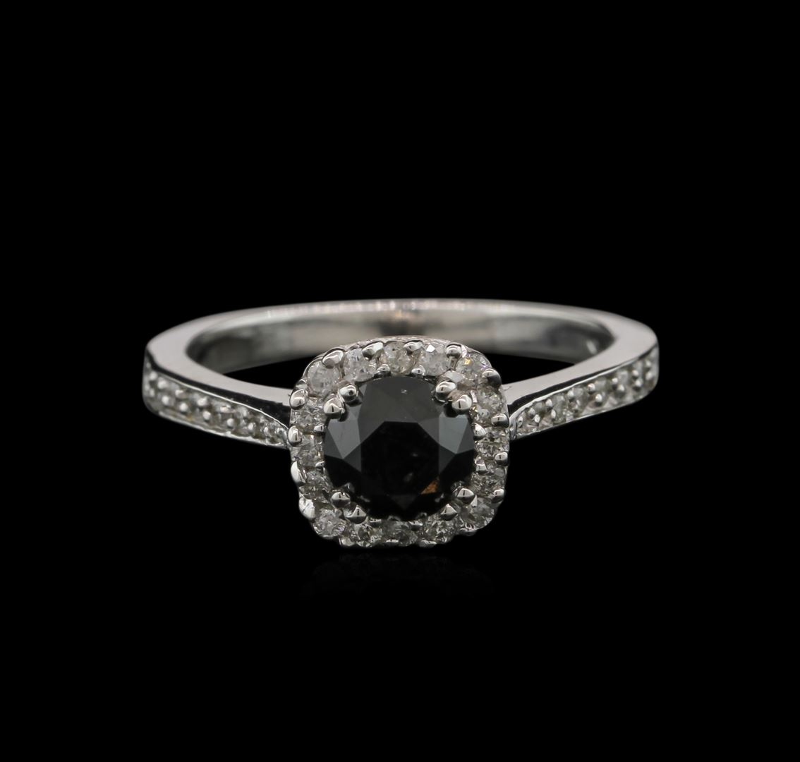One ring featuring: 14KT white gold weighing 3.11 grams containing one prong set round black diamond center stone with a total weight of 0.86ct and pave set round white diamonds with a total weight of 0.27ct.