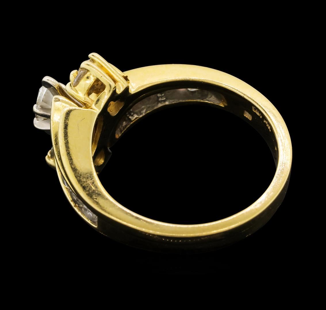 One set electronically tested 14KT yellow gold lady's cast wedding ring & wedding band with a bright polish finish. The featured lady's ring and band have a double shank measuring 3.98 millimeters wide. Identified with markings of '14K'. Condition is used GAS Appraised at $3,605.00.