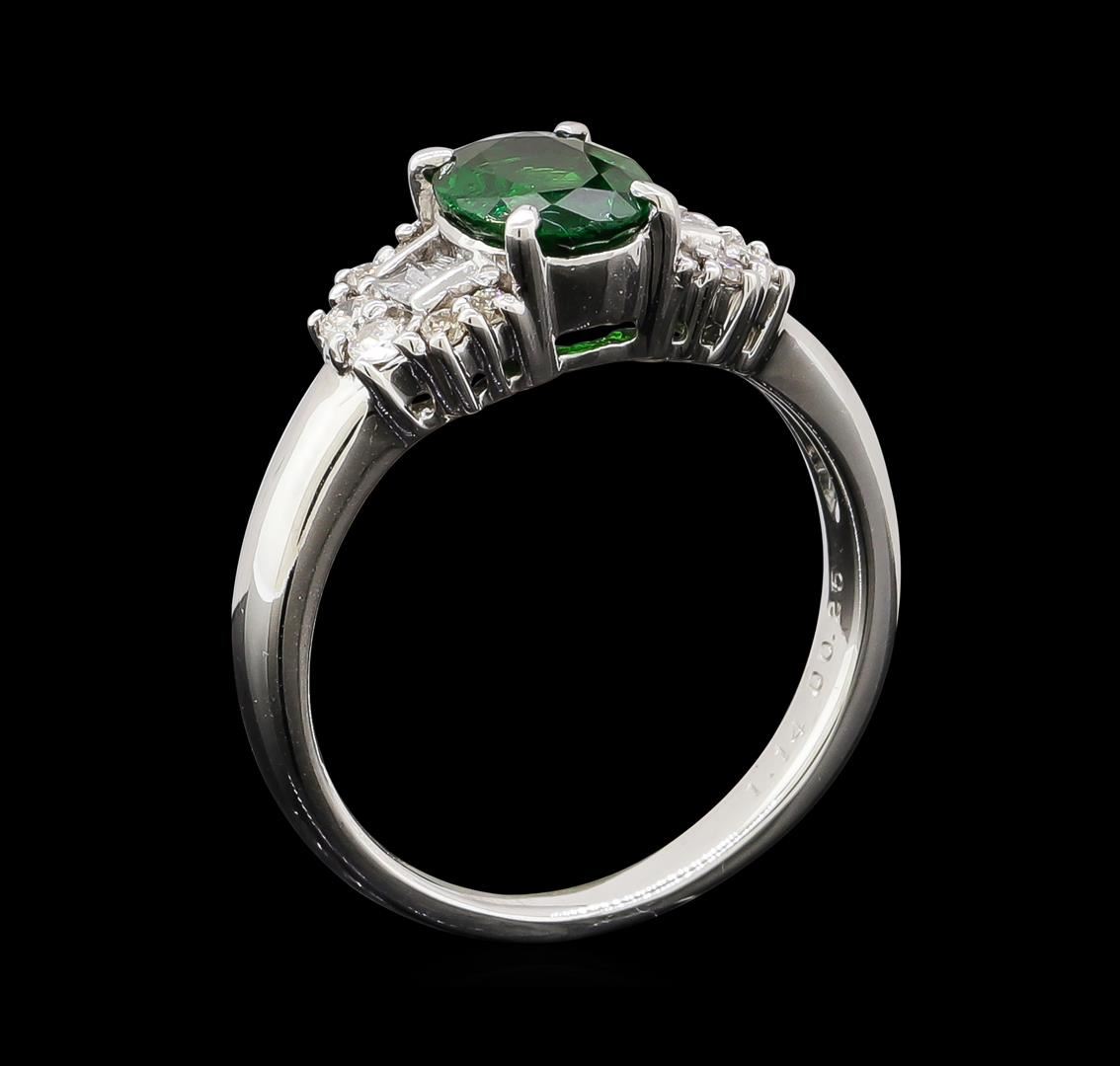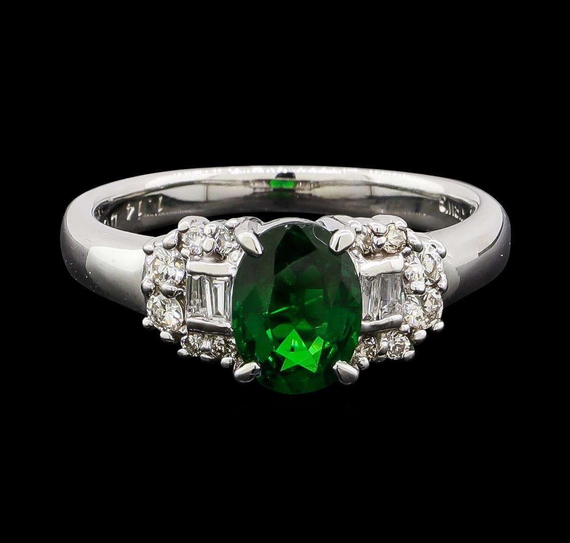 One ring featuring: 18KT White Gold containing Green Garnet with a total weight of 1.14ct and Diamonds with a total weight of 0.25ct. Total Weight of Ring: 4.4 grams.