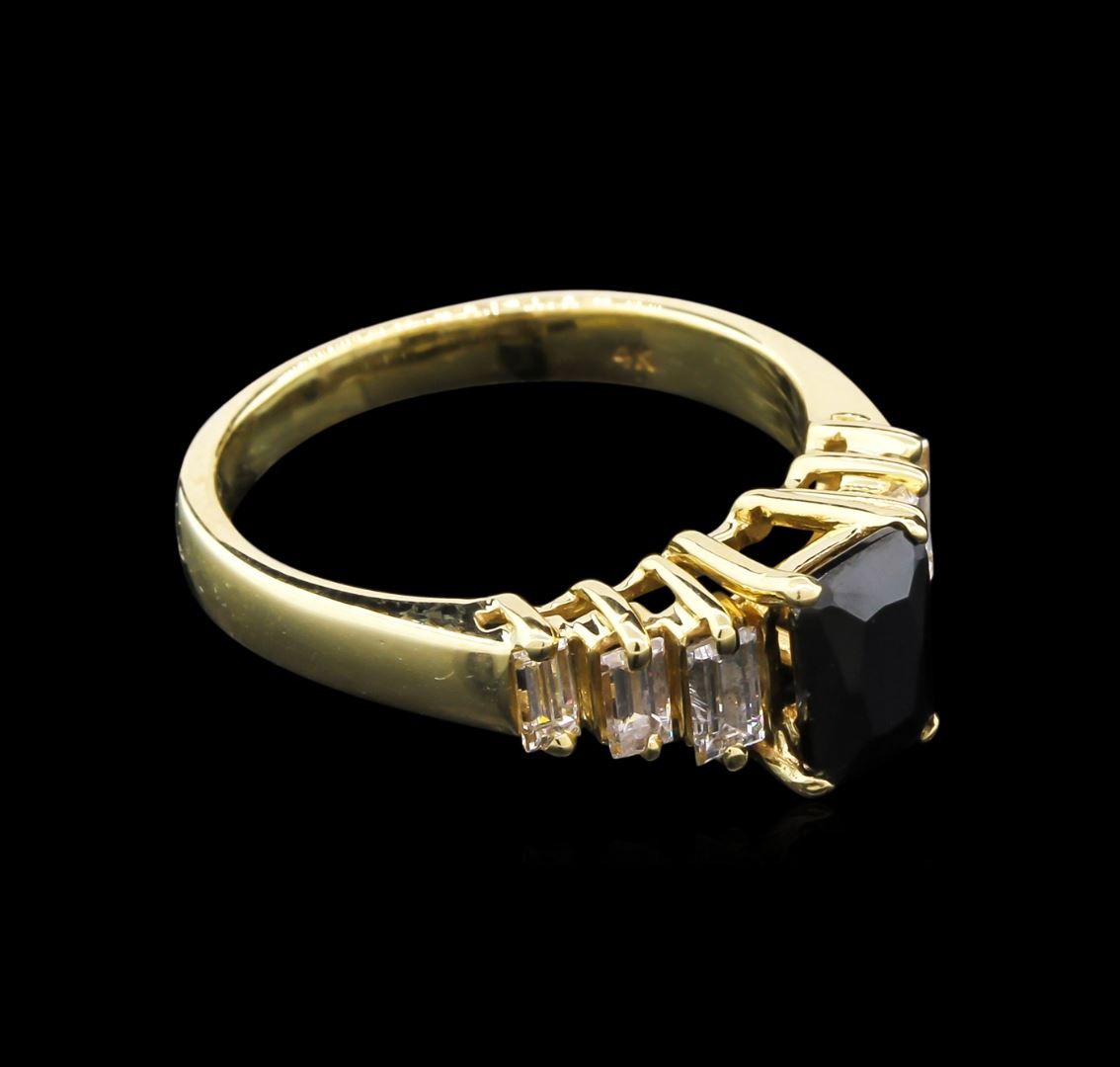 One ring featuring: 14KT yellow gold weighing 4.10 grams containing one black onyx center stone with a total weight of 1.14ct and diamonds with a total weight of 0.24ct.