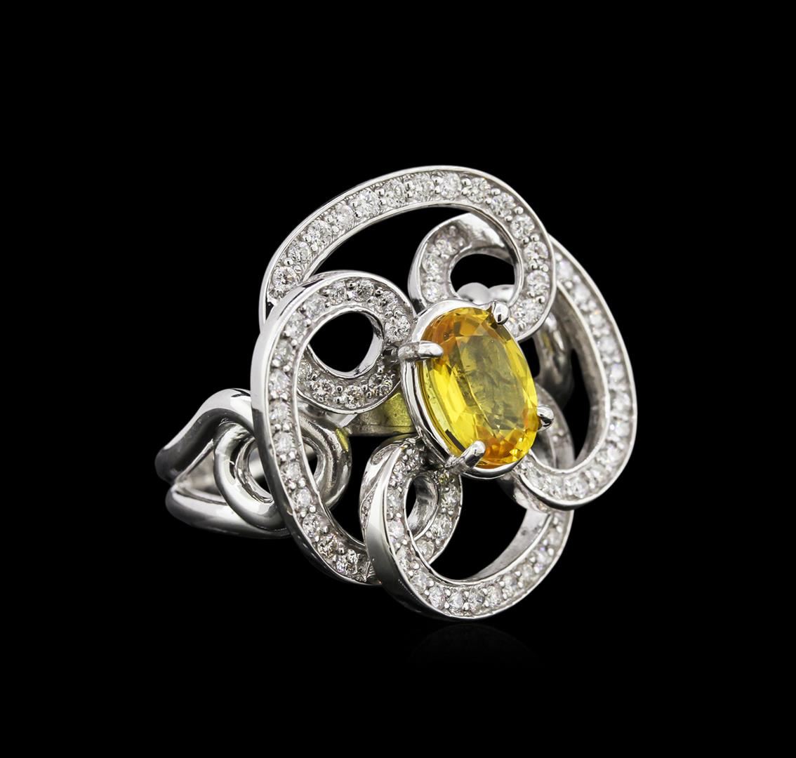 One ring featuring: 14KT white gold weighing 11.11 grams containing one yellow sapphire with a total weight of 1.15ct and diamonds with a total weight of 0.84ct.