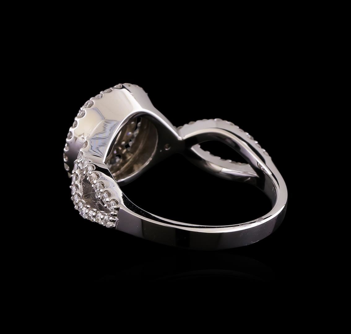 One electronically tested 14KT white gold lady's cast wedding ring with a split shank double halo with a bright polish finish. The featured lady's ring has a shank measuring 2.45 millimeters wide. Identified with markings of "K14". Condition is new, good workmanship. Containing: One prong set round brilliant cut diamond, measuring 5.13 - 5.12 x 3.24mm (depth est.) , 5.00.%. GTCF approximate weight of 0.55ct. Graded in the setting. Clarity: I-1. Color: G - Excellent Forty round brilliant cut diamonds, measuring 1.30 - 1.20 x 0.78mm (depth est.) approximate total weight of 40 Stones = 0.30ct. Graded in the setting. Clarity: SI-1 to SI-2. Color: G - Good Sixty-Four prong set round brilliant cut diamonds, measuring 1.15 - 1.05 x 0.67mm (depth est.) approximate total weight of 64 Stones = 0.31ct. Graded in the setting. Clarity: SI-1 to SI-2. Color: G - Good. Total Weight of Diamonds 1.16ct. Total Weight of Ring 4.40gm. GAS Appraised at $6,555.00.