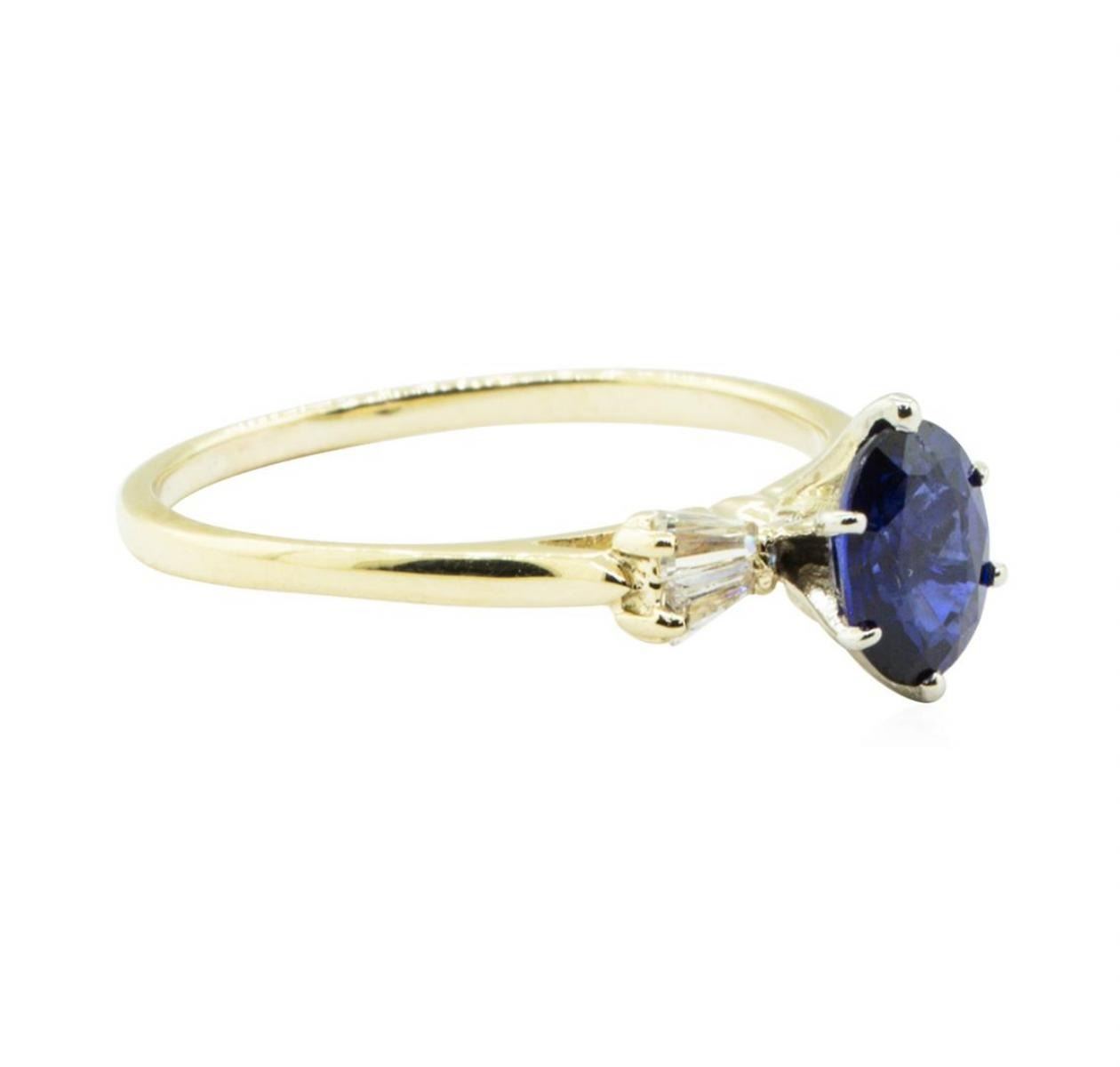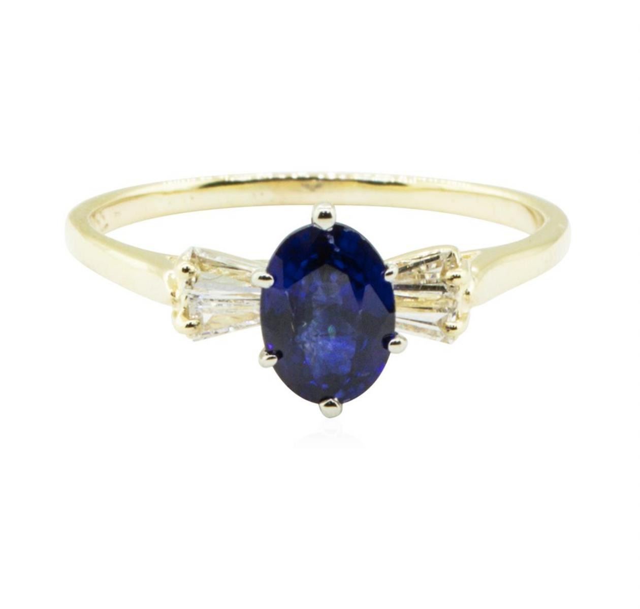 One ring featuring: 14KT yellow gold weighing 2.1 grams containing one sapphire weighing 0.97ct and diamonds weighing 0.20 ctw.