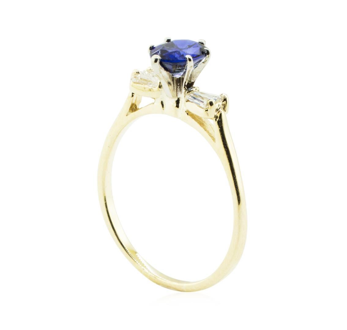 One ring featuring: 14KT yellow gold weighing 2.1 grams containing one sapphire weighing 0.97ct and diamonds weighing 0.20 ctw.