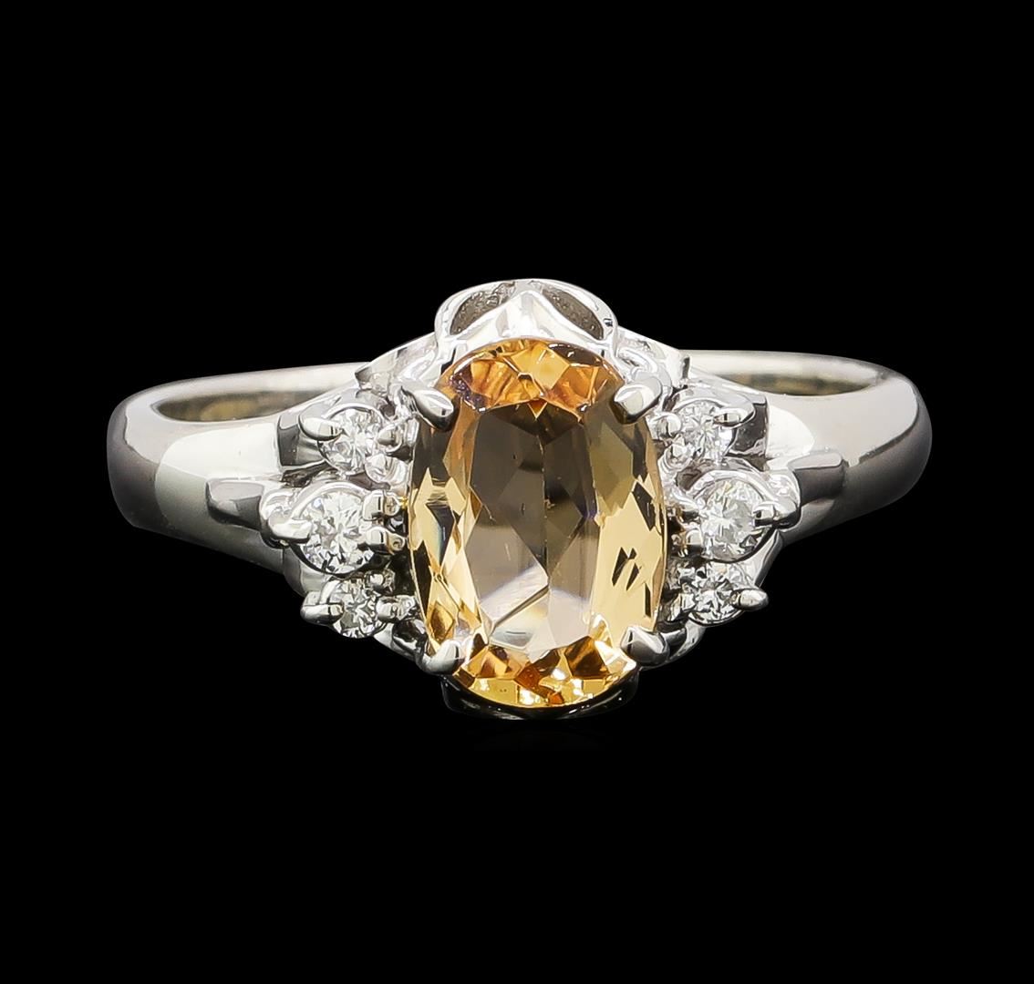 One ring featuring: Platinum containing Imperial Topaz with a total weight of 1.17ct and Diamonds with a total weight of 0.08ct. Total Weight of Ring: 5.6 grams.