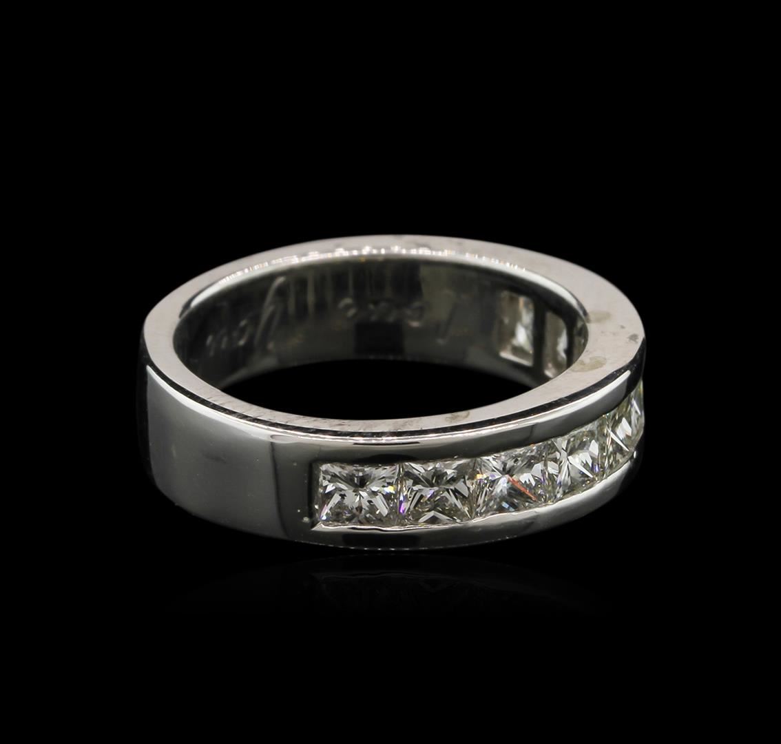 One electronically tested 14KT white gold ladies cast diamond wedding band with a bright polish finish. Identified with markings of "14K". Condition is very good. Containing: Nine channel set princess cut diamonds, measuring 3.20 x 3.20 x 2.40mm (depth est.) approximate total weight of 9 Stones = 1.18ct. Clarity: VS-2. Color: I - J, Cut is Very Good. Diamonds are graded in the mounting, unless otherwise stated. Total Weight of Diamonds 1.18ct. Total Weight of Wedding Band 5.00 grams. GGL Appraised at $3,620.00.