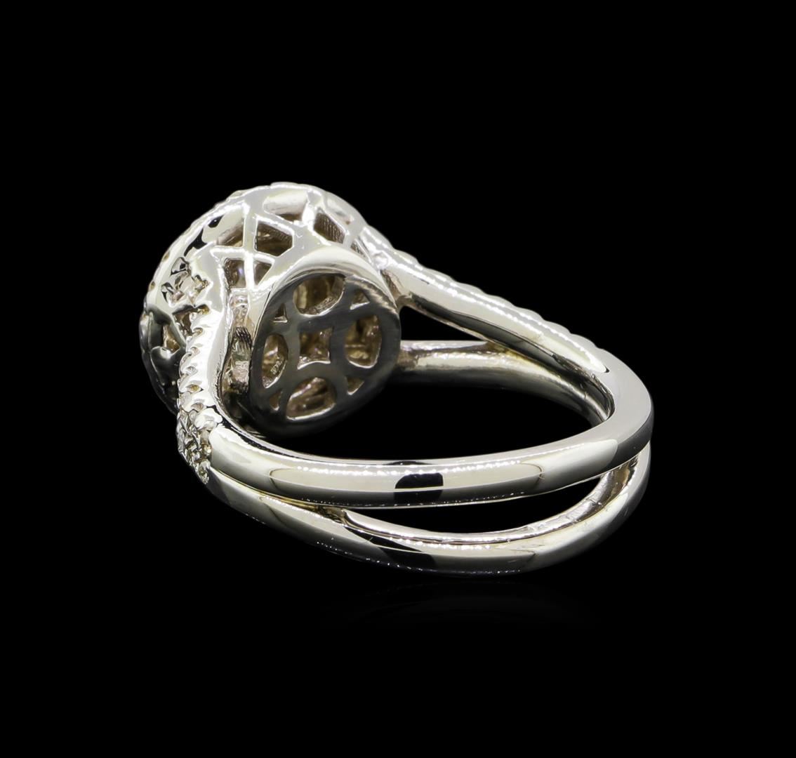 One electronically tested 14KT white gold lady's cast wedding ring with a split shank double basket halo with a bright polish finish. The featured lady's ring has a split double shank measuring 5.53 millimeters wide. Condition is new, good workmanship. Containing: One prong set round brilliant cut diamond, measuring 5.15 - 5.13 x 3.28mm (depth est.) , 10.00.%. GTCF approximate weight of 0.58ct. Graded in the setting. Clarity I-1. Color: H Cut Good Seventy-Six prong set round brilliant cut diamonds, measuring 1.30 - 1.25 x 0.79mm (depth est.) approximate total weight of 76 Stones = 0.60ct. Graded in the setting. Clarity SI-1 to SI-2. Color: H - I Cut Good. Total Weight of Diamonds 1.18ct.. Total Weight of Ring 6.30gm Liquidation Value $6110.00.. GAS Appraised at $5,465.00.