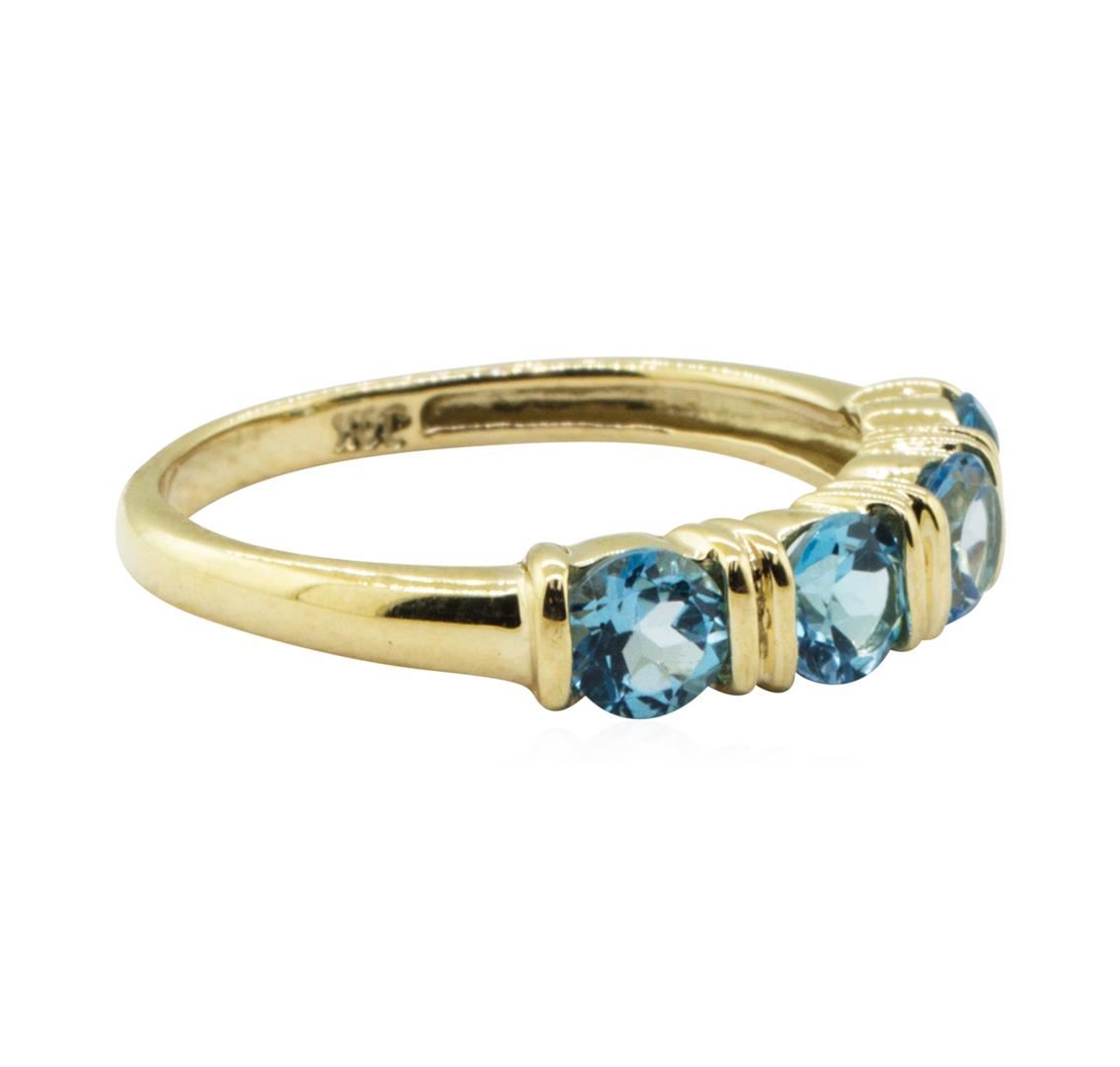 One ring featuring: 14KT yellow gold weighing 2.1 grams containing four blue topaz weighing 1.20 ctw.