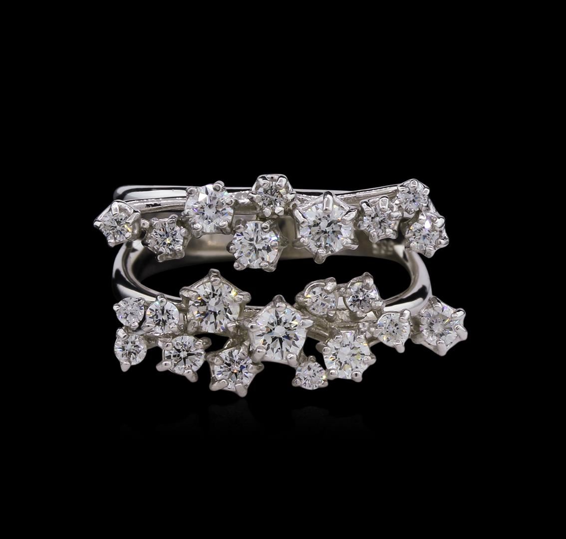 One electronically tested 14KT white gold lady's cast fashion ring with a split shank with a bright polish finish. The featured lady's ring has a shank measuring 3.50 millimeters wide. Identified with markings of "585". Condition is new, good workmanship. Containing: Six prong set round brilliant cut diamonds, measuring 3.30 - 2.60 x 1.77mm (depth est.) approximate total weight of 6 Stones = 0.56ct. Graded in the setting. Clarity: SI-1 to SI-2. Color: H - I. Cut Very Good Eighteen prong set round brilliant cut diamonds, measuring 2.30 - 1.70 x 1.26mm (depth est.) approximate total weight of 18 Stones = 0.64ct. Graded in the setting. Clarity: SI-1 to SI-2. Color: G - I. Cut Good. Total Weight of Diamonds 1.20ct. Total Weight of Ring 6.00gm. GAS Appraised.