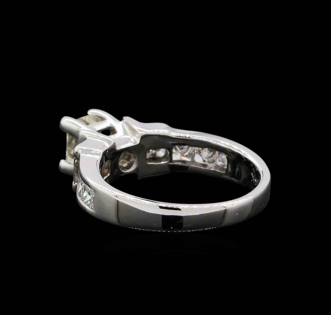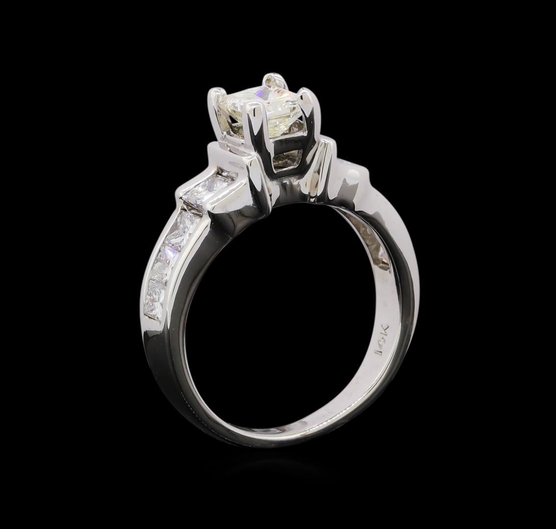 One 14KT white gold lady's ring weighing 4.80 grams containing one center princess cut diamond with I clarity and H-I color weighing 0.55ct and surrounding diamonds with SI clarity and G-H color weighing 0.65ctw. RBGS Appraised at $4,000.00.