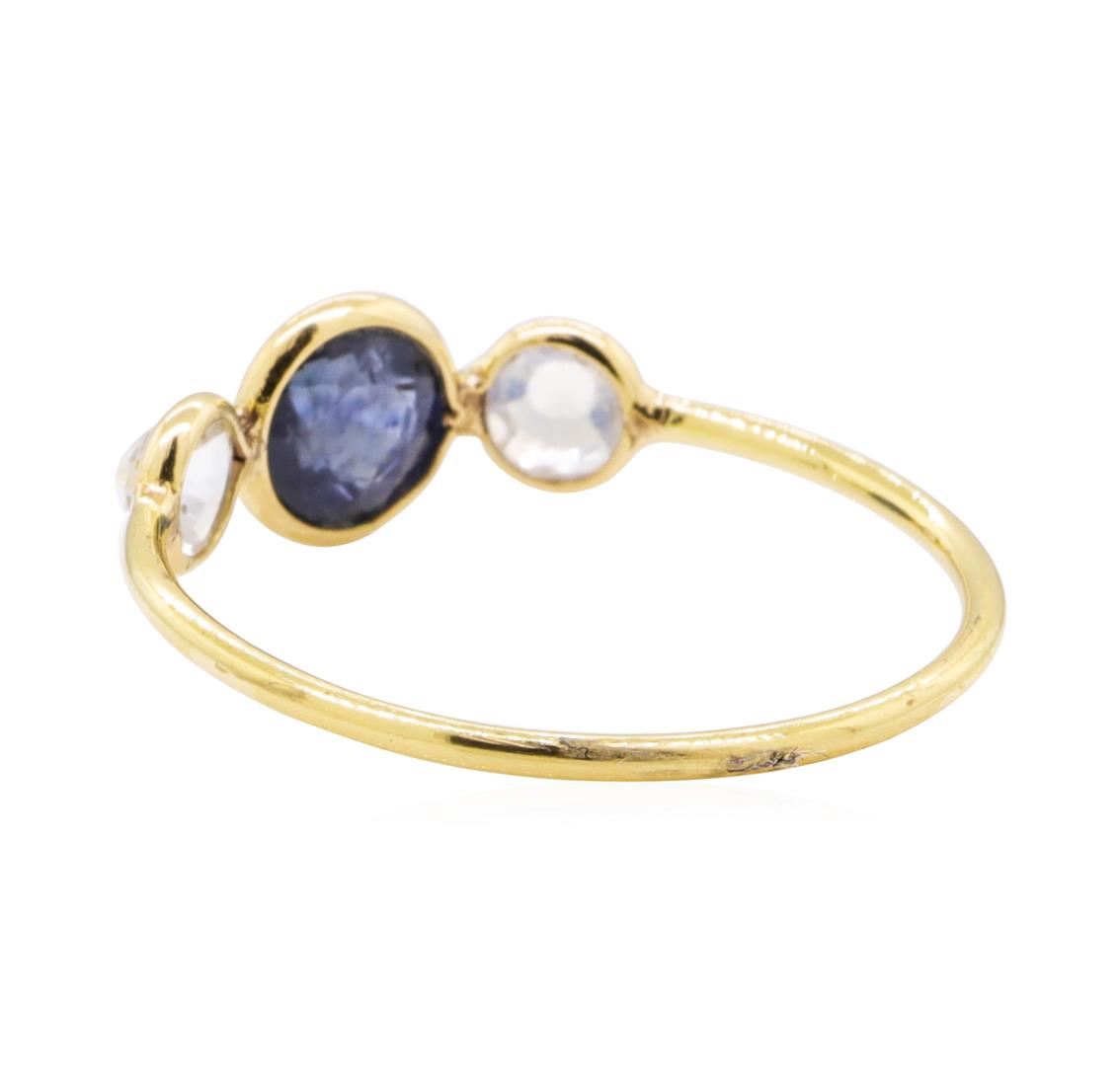 One ring featuring: 18KT yellow gold weighing 1.0 grams containing one sapphire weighing 0.80 ct and two moonstones weighing 0.40 ctw.