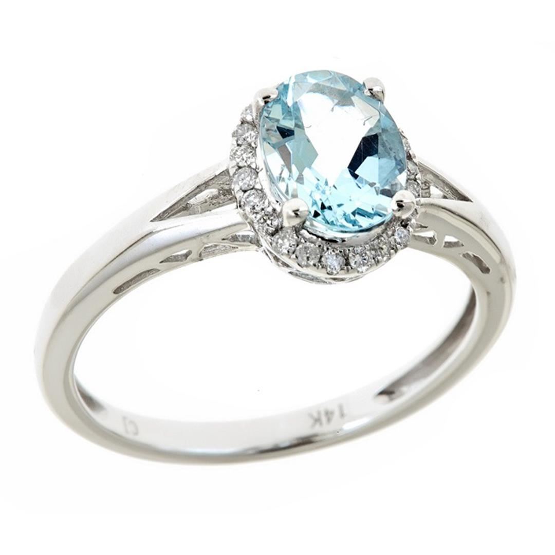 One Ring featuring: 14KT White Gold weighing 2.14 grams containing Aquamarine with an approximate weight of 1.21ct, Diamond with an approximate weight of 0.12ct, and with an approximate weight of ct.