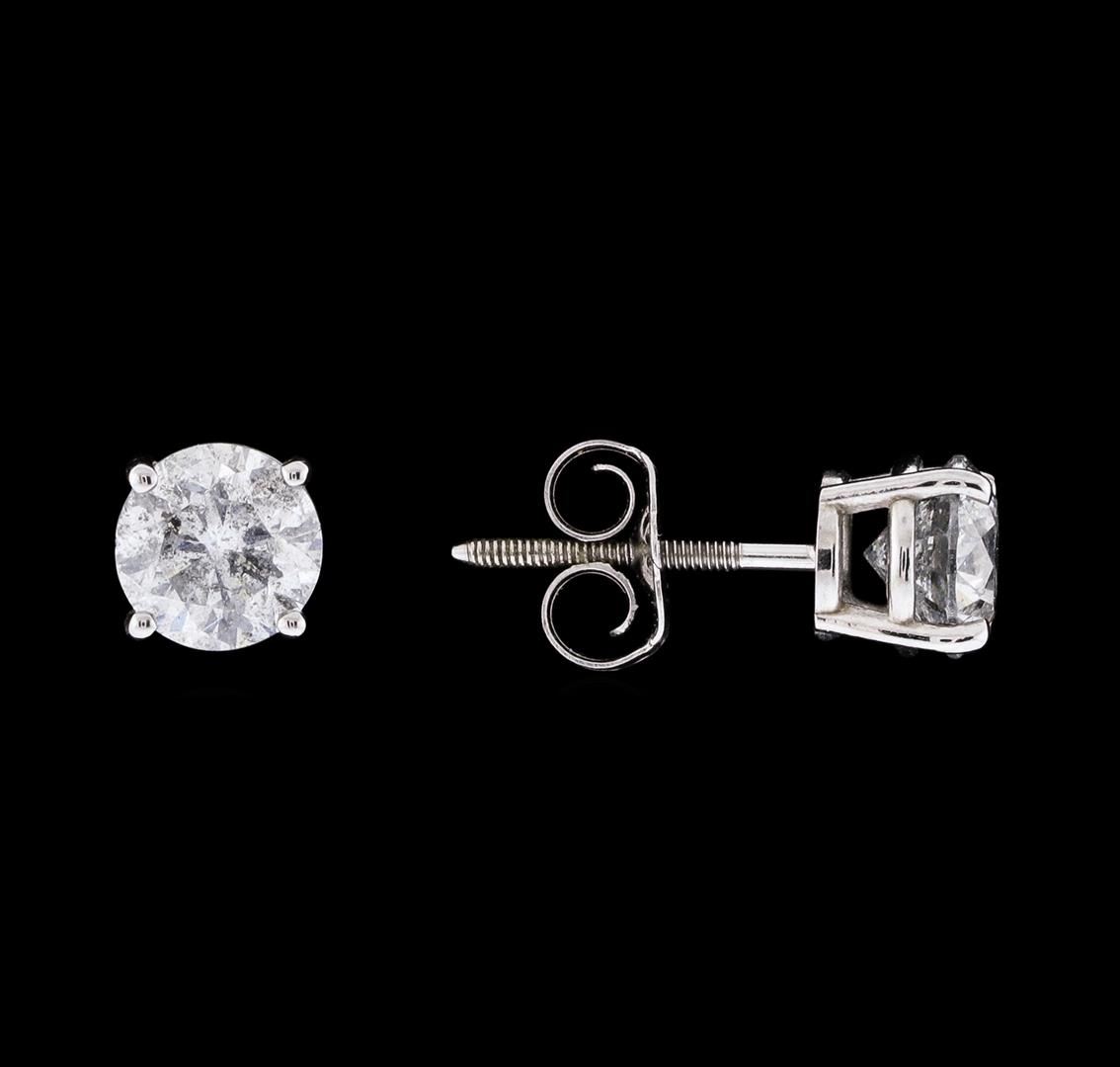 One pair electronically tested 14KT white gold lady's cast stud earrings with threaded posts with friction backs with a basket setting with a bright polish finish. Identified with markings of '14K'. Condition is new, good workmanship. Containing: One prong set round brilliant cut diamond, measuring 5.33 - 5.28 x 3.50mm (depth est.) approximate weight of 0.61ct. Graded in the setting. Clarity I-2. Color: I - J Cut Good One prong set round brilliant cut diamond, measuring 5.25 - 5.23 x 3.40mm (depth est.) approximate weight of 0.60ct. Graded in the setting. Clarity I-1. Color: I - J Cut Good. Total Weight of Diamonds 1.21ct.. Total Weight of Earrings 1.20gm. GAS Appraised at $4,935.00.