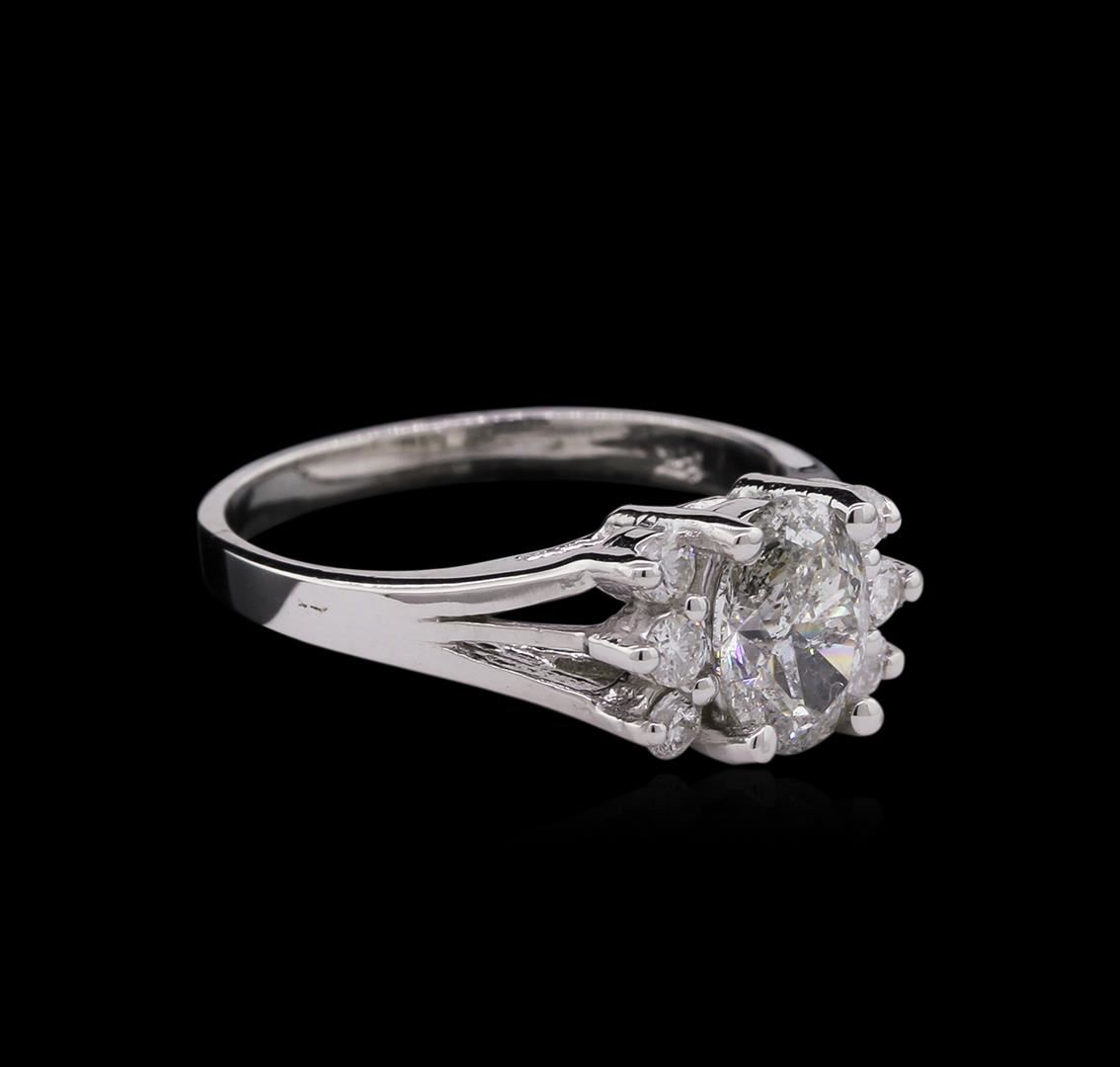 One electronically tested 14KT white gold lady's cast wedding ring with a split shank with a bright polish finish. The featured lady's ring has a shank measuring 2.00 millimeters wide. Identified with markings of "14K". Condition is new, good workmanship. Containing: One prong set oval shaped cut diamond, measuring 7.49 x 5.38 x 3.58mm (depth est.) , 10.00.%. GTCF approximate weight of 1.00ct. Graded in the setting. Clarity: I-2. Color: J - Good Six prong set round brilliant cut diamonds, measuring 2.10 - 2.05 x 1.33mm (depth est.) approximate total weight of 6 Stones = 0.21ct. Graded in the setting. Clarity: SI-1 to SI-2. Color: H - I. Cut Good. Total Weight of Diamonds 1.21ct. Total Weight of Ring 3.00gm. GAS Appraised at $5,225.00.