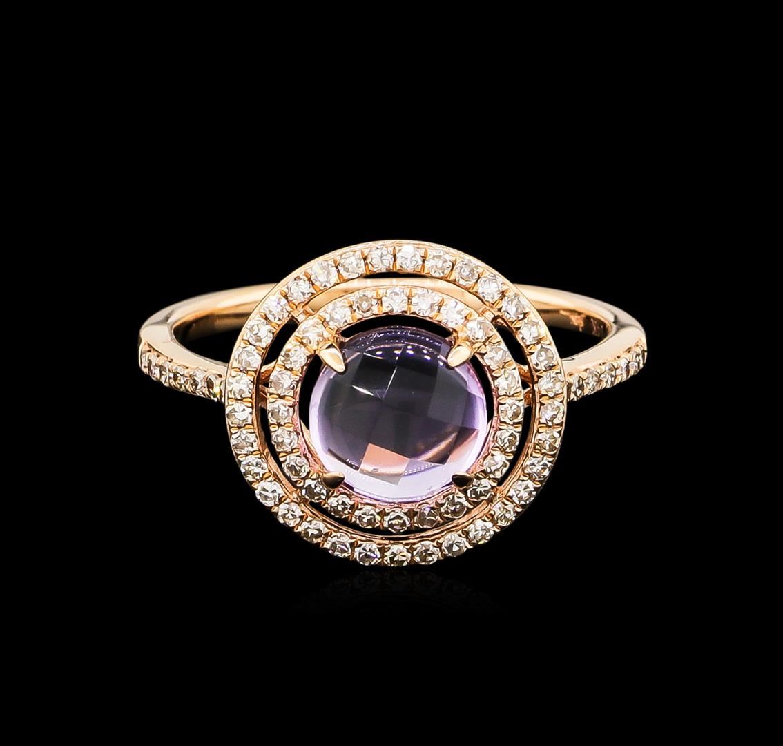 One ring featuring: 14KT rose gold weighing 2.70 grams containing one amethyst with a total weight of 1.21ct and side diamonds with a total weight of 0.37ct.
