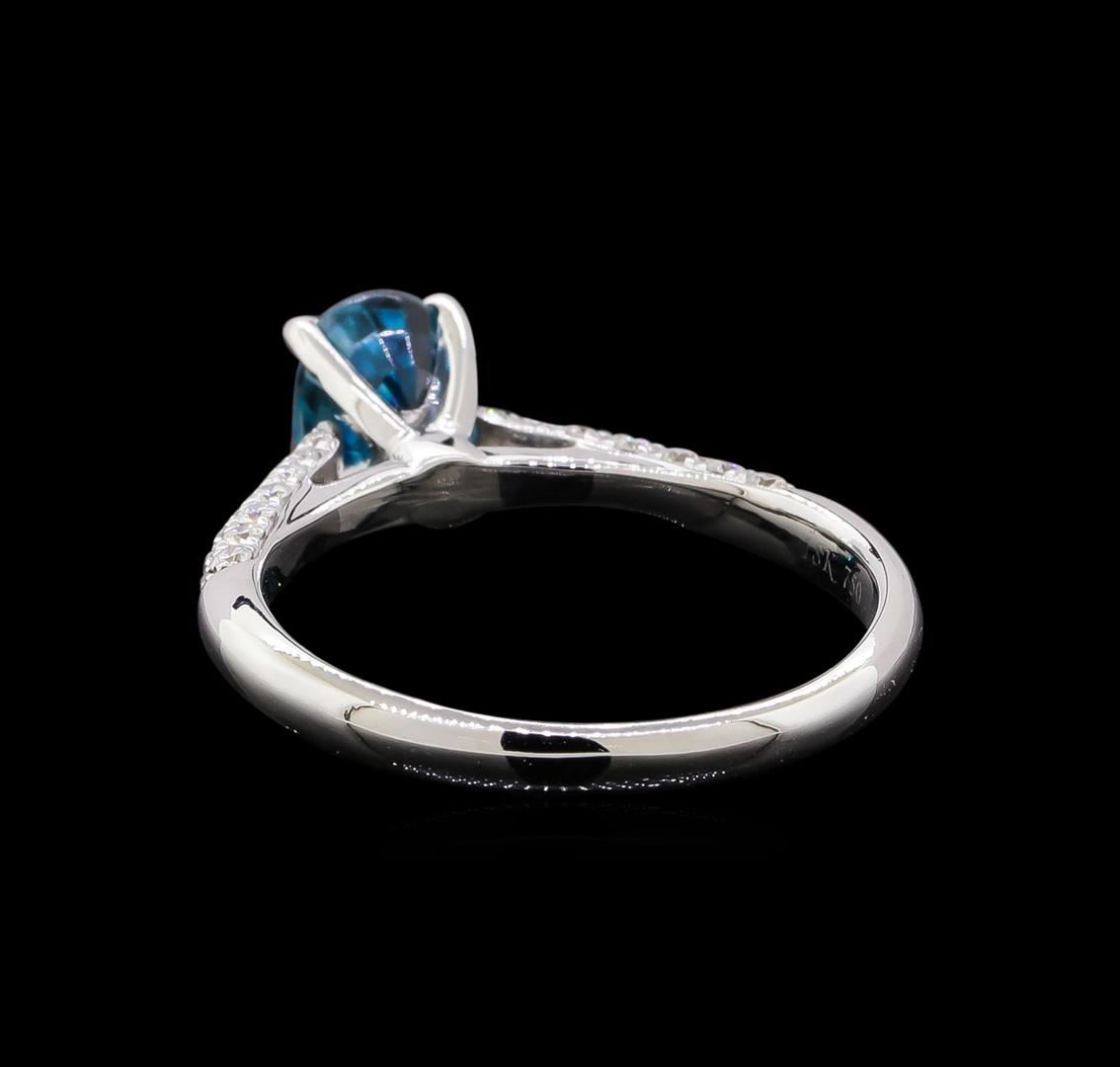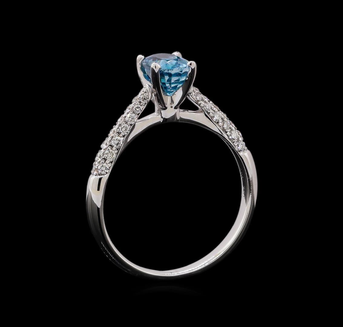 One ring : 14KT white gold weighing 3.25gm containing one blue zircon with a total weight of 1.22ct and diamonds weighing 0.5ctw.