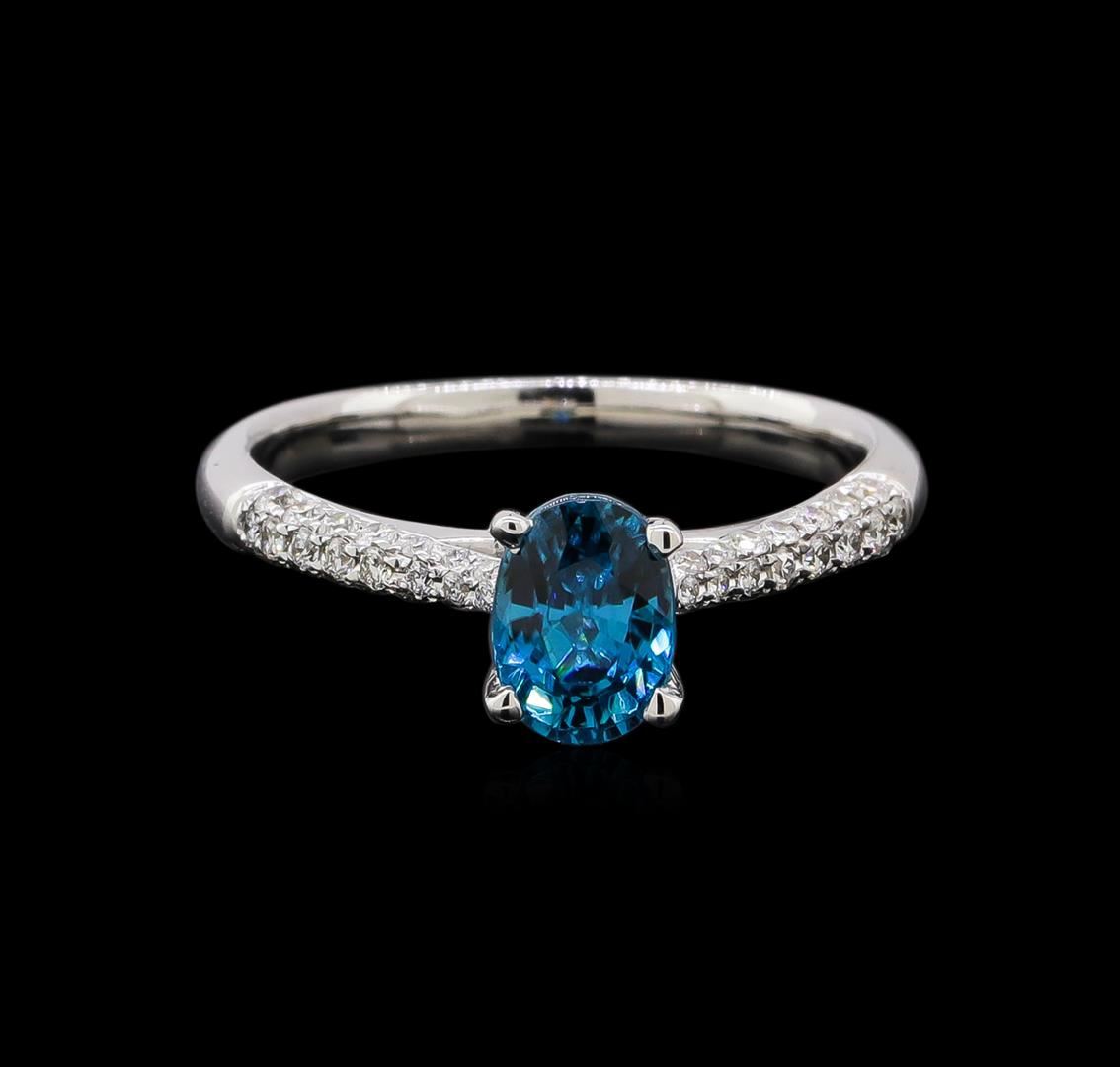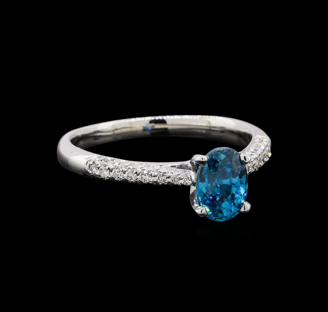 One ring : 14KT white gold weighing 3.25gm containing one blue zircon with a total weight of 1.22ct and diamonds weighing 0.5ctw.
