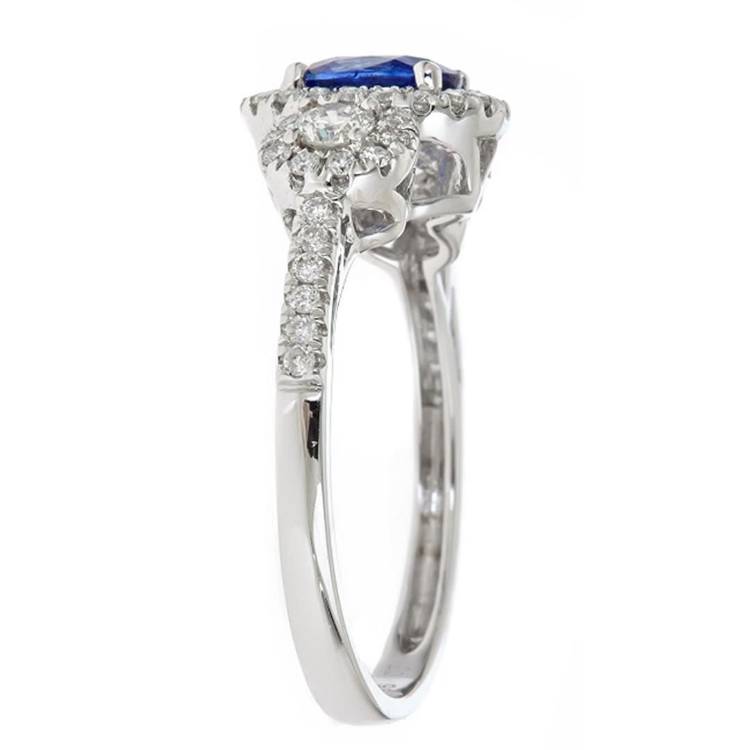 One Ring : 14KT white gold weighing 2.97gm containing one blue sapphire center stone with a total weight of 1.22ct and side diamonds weighing 0.53ctw.