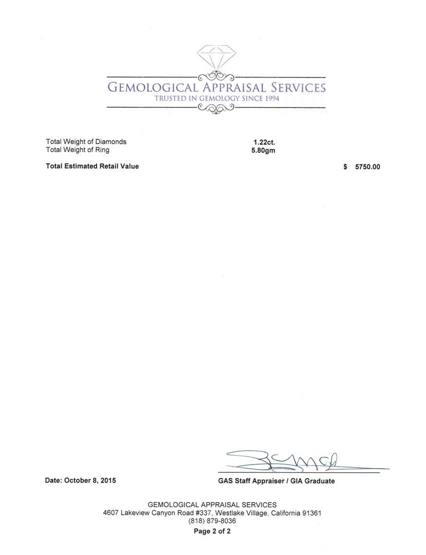 Not all Jewelry, watches or loose stones are appraised and the appraisals are provided for bidders only in certain instances at the discretion of SAA. Our appraisals are conducted by independent third-party appraisal firms. Such firms may be certified GIA Gemologists or have education in the industry or alternative certifications. Appraisals should be used for verification of gemstone and/or metal weight, size, and grade only, not actual value for resale or insurance purposes. Appraisal value should be not considered for actual value, as price varies greatly from retail locations and other merchants in different geographic locations. All Items auctioned by SAA should not be purchased with a view or expectation toward resale for appraisal price given, or to make a profit. The ultimate value for which an item can be resold may vary drastically from the appraisals listed by SAA.