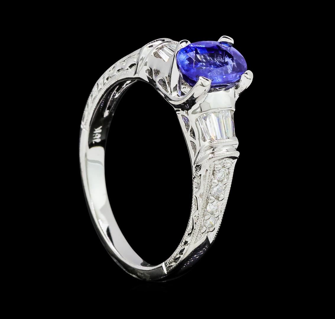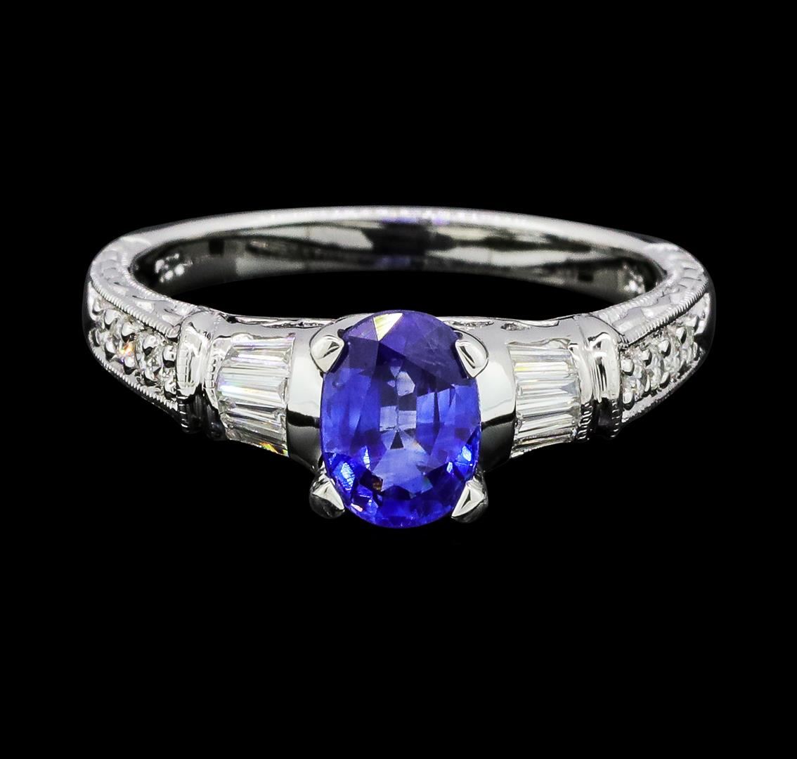 One lady's ring featuring: 18KT white gold weighing 4.8 grams containing one sapphire weighing 1.23ct and diamonds weighing 0.45ctw.