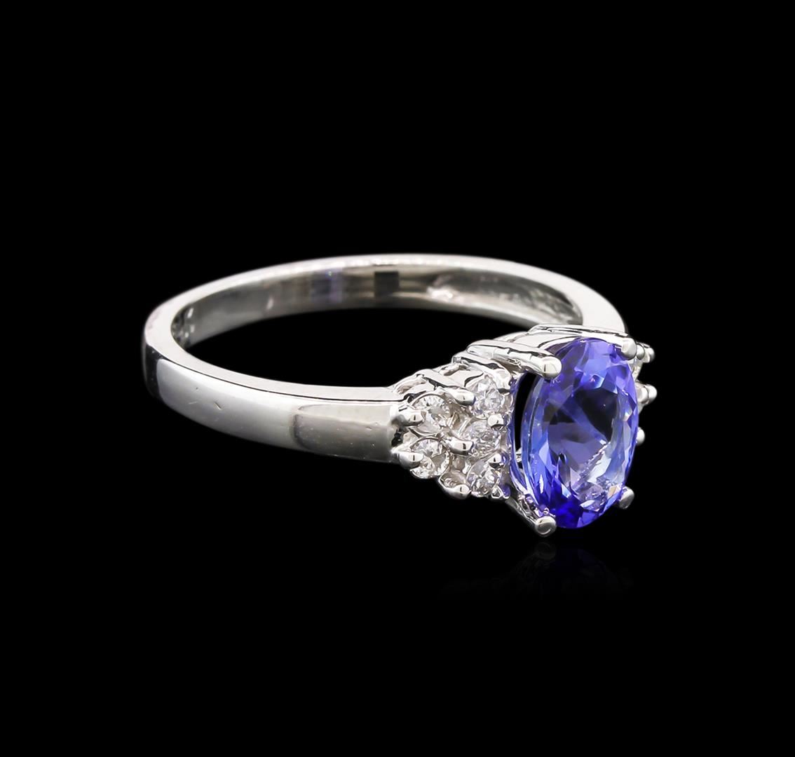 One ring featuring: 14KT white gold weighing 2.85 grams containing one tanzanite with a total weight of 1.23ct and ten diamonds with a total weight of 0.20ct.