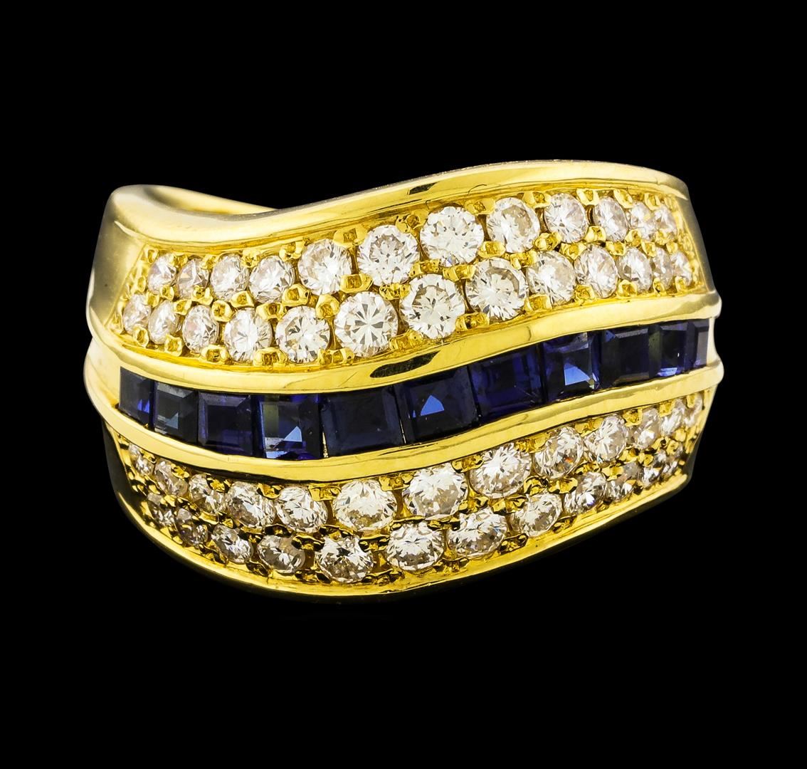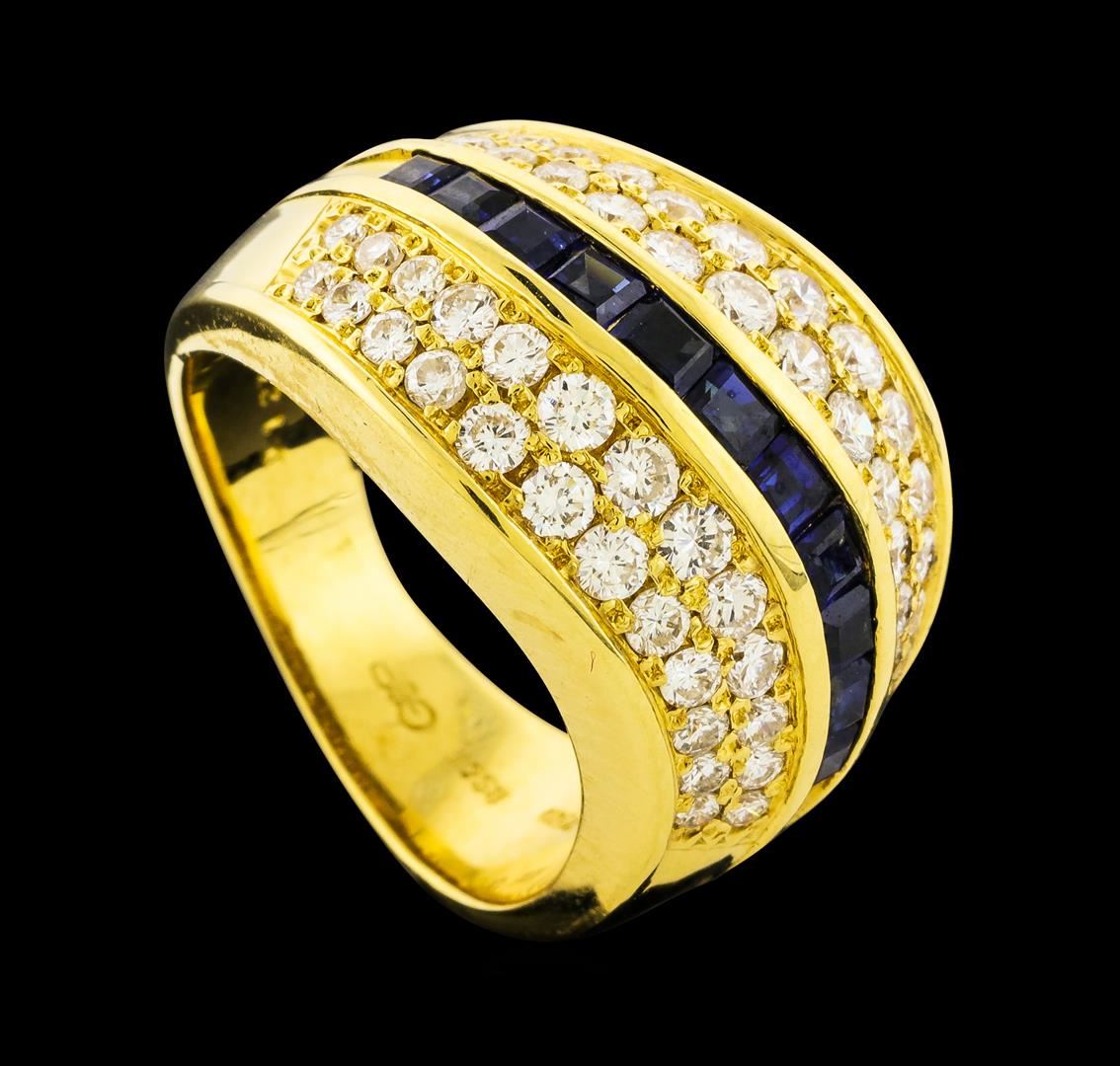 One ring featuring: 18KT Yellow Gold containing Sapphire with a total weight of 1.24ct and Diamonds with a total weight of 1.27ct. Total Weight of Ring: 15.9 grams.