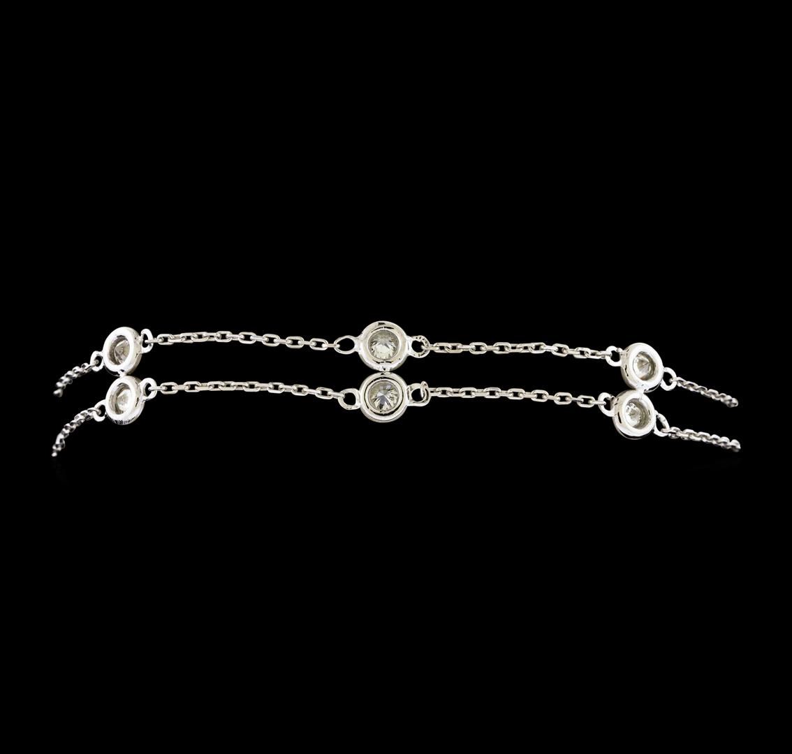 One electronically tested 14KT white gold lady's combination cast & assembled double strand station bracelet with a lobster claw clasp with a bright polish finish. The featured lady's bracelet measures approximately 7 inches in length. Identified with markings of '585'. Condition is new, good workmanship. Containing: Twelve bezel set round brilliant cut diamonds, measuring 3.10 - 3.00 x 1.83mm (depth est.) approximate total weight of 12 Stones = 1.25ct. Graded in the setting. Clarity SI-1 to I-1. Color: H - I Cut Good. Total Weight of Diamonds 1.25ct.. Total Weight of Bracelet 3.80gm. GAS Appraised at $3,205.00.