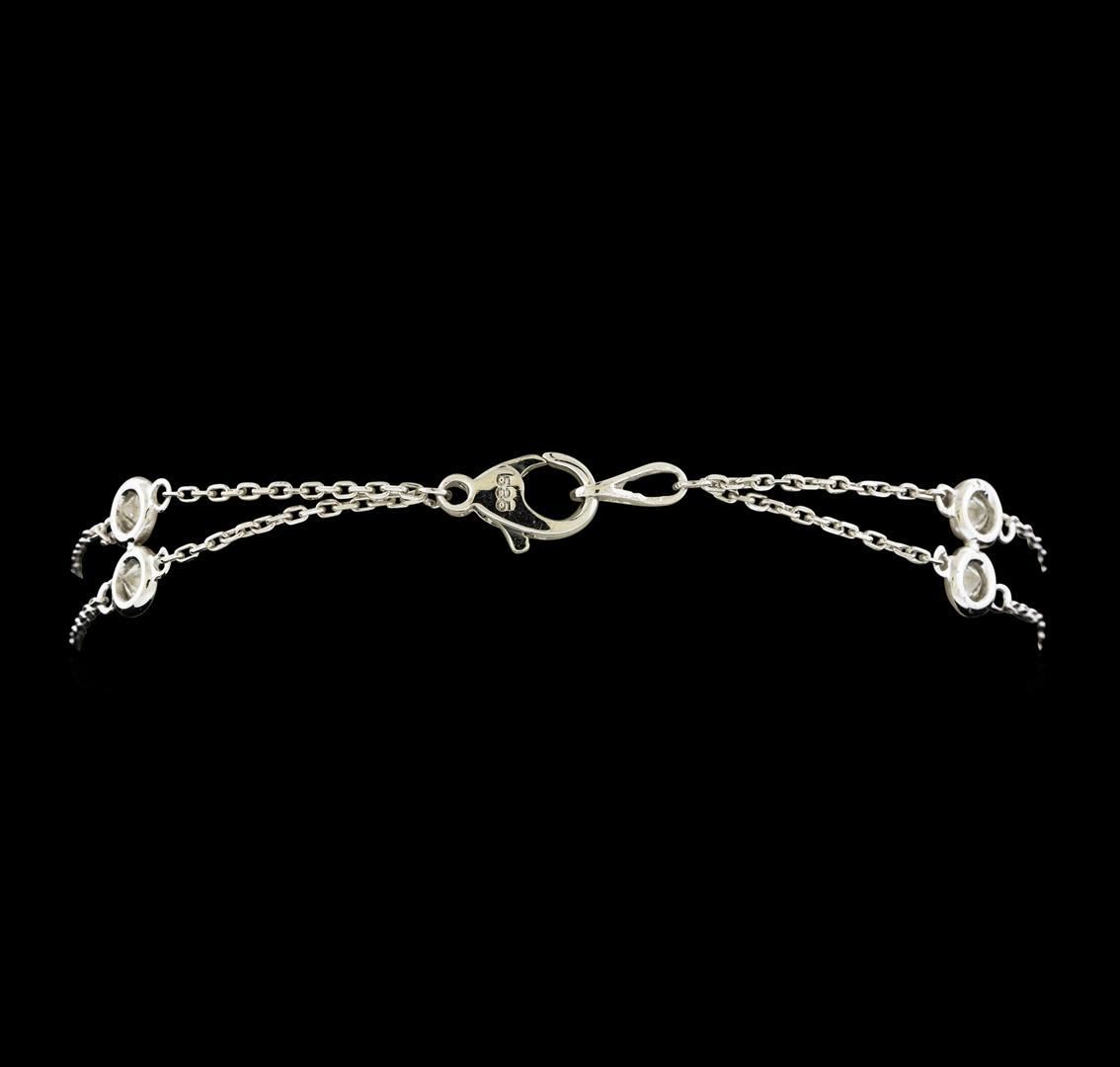 One electronically tested 14KT white gold lady's combination cast & assembled double strand station bracelet with a lobster claw clasp with a bright polish finish. The featured lady's bracelet measures approximately 7 inches in length. Identified with markings of '585'. Condition is new, good workmanship. Containing: Twelve bezel set round brilliant cut diamonds, measuring 3.10 - 3.00 x 1.83mm (depth est.) approximate total weight of 12 Stones = 1.25ct. Graded in the setting. Clarity SI-1 to I-1. Color: H - I Cut Good. Total Weight of Diamonds 1.25ct.. Total Weight of Bracelet 3.80gm. GAS Appraised.