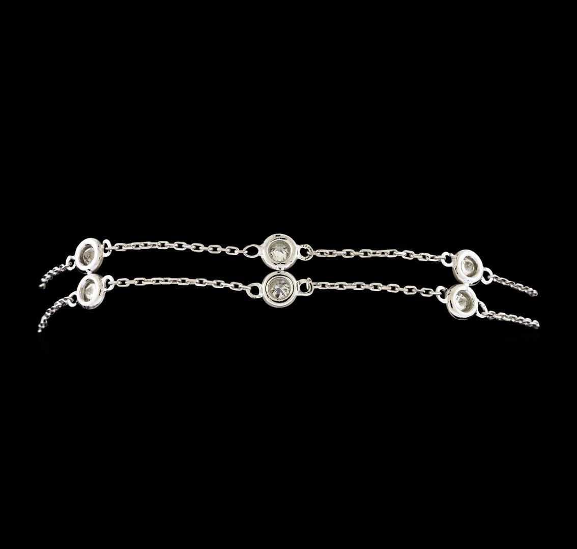 One electronically tested 14KT white gold lady's combination cast & assembled double strand station bracelet with a lobster claw clasp with a bright polish finish. The featured lady's bracelet measures approximately 7 inches in length. Identified with markings of '585'. Condition is new, good workmanship. Containing: Twelve bezel set round brilliant cut diamonds, measuring 3.10 - 3.00 x 1.83mm (depth est.) approximate total weight of 12 Stones = 1.25ct. Graded in the setting. Clarity SI-1 to I-1. Color: H - I Cut Good. Total Weight of Diamonds 1.25ct.. Total Weight of Bracelet 3.80gm. GAS Appraised.