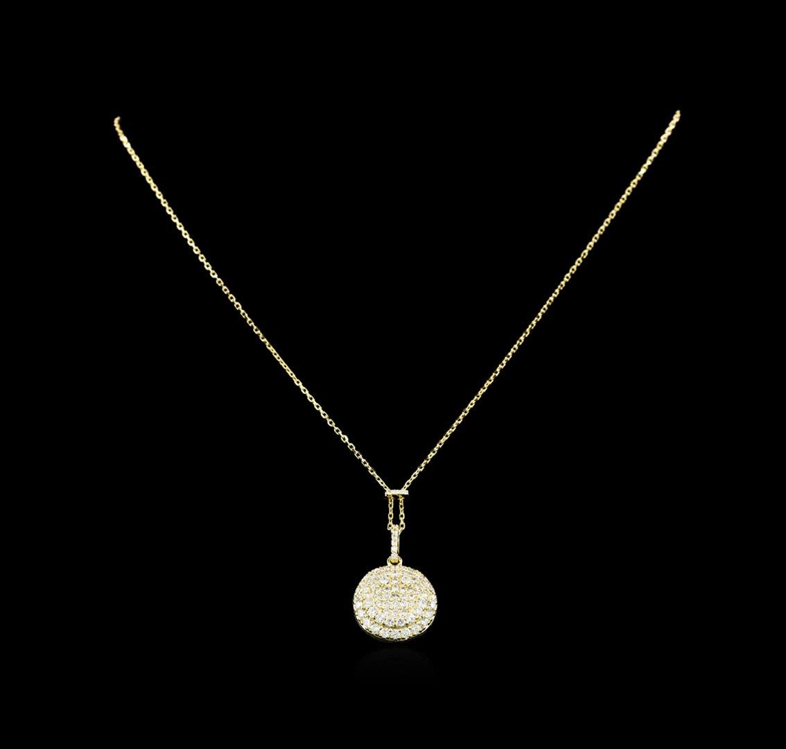 One electronically tested 14KT yellow gold lady's combination cast & assembled lariat necklace with a lobster claw clasp with a bright polish finish. The featured lady's necklace has a smiley face motif and an attached 18 inch long 1.2 millimeter diamond cut cable link chain. Identified with markings of 'K14'. Condition is new, good workmanship. Containing: Twenty-Two prong set round brilliant cut diamonds, measuring 2.00 - 1.90 x 1.21mm (depth est.) approximate total weight of 22 Stones = 0.62ct. Graded in the setting. Clarity SI-1 to SI-3. Color: H - I Cut Good Fifty prong set round brilliant cut diamonds, measuring 1.55 - 1.40 x 0.89mm (depth est.) approximate total weight of 50 Stones = 0.56ct. Graded in the setting. Clarity SI-1 to SI-2. Color: H - I Cut Good Ten prong set round brilliant cut diamonds, measuring 1.20 - 1.00 x 0.68mm (depth est.) approximate total weight of 10 Stones = 0.07ct. Graded in the setting. Clarity SI-1 to SI-2. Color: H - I Cut Good. Total Weight of Diamonds 1.25ct.. Total Weight of Necklace 6.70gm GAS Appraised at $4,390.00.