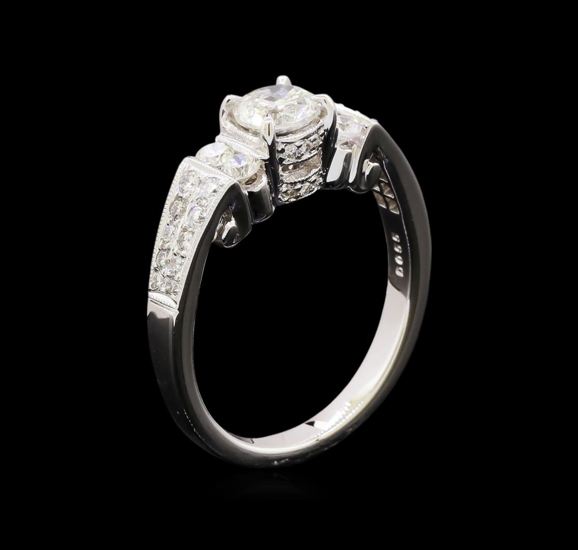 One electronically tested 18KT white gold lady's cast straight line wedding ring with a cathedral shank with a bright polish with milgrain detailing finish. The featured lady's ring has a shank measuring 2.50 millimeters in width. Identified with markings of "18K". Condition is new, good workmanship. Containing: One prong set round brilliant cut diamond, measuring 5.51 - 5.48 x 3.50mm (depth est.) , 10.00.%. GTCF approximate weight of 0.70ct. Graded in the setting. Clarity: I-1. Color: H - I. Cut Very Good Four channel set round brilliant cut diamonds, measuring 2.60 - 2.50 x 1.58mm (depth est.) approximate total weight of 4 Stones = 0.25ct. Graded in the setting. Clarity: SI-1 to SI-2. Color: G - Very Good Twenty prong set round brilliant cut diamonds, measuring 1.60 - 1.30 x 0.90mm (depth est.) approximate total weight of 20 Stones = 0.24ct. Graded in the setting. Clarity: SI-1 to SI-2. Color: G - Very Good Twelve prong set round brilliant cut diamonds, measuring 1.20 - 1.10 x 0.72mm (depth est.) approximate total weight of 12 Stones = 0.06ct. Graded in the setting. Clarity: SI-1 to SI-2. Color: G - Very Good. Total Weight of Diamonds 1.25ct. Total Weight of Ring 5.80gm. GAS Appraised at $6,715.00.