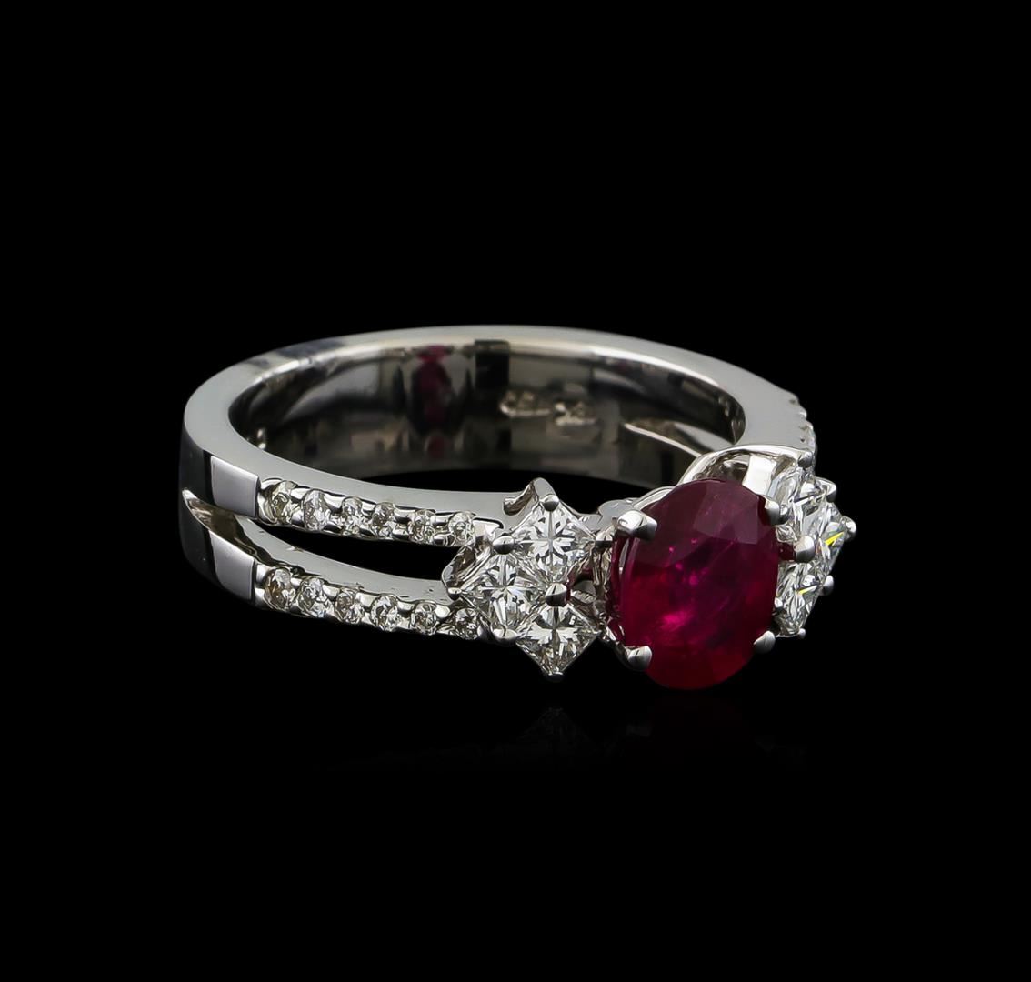 One ring featuring: 18KT white gold weighing approximately 6.98 grams containing one ruby with a total weight of 1.25ct and diamonds with a total weight of 0.70ct.